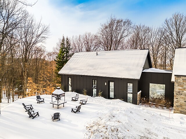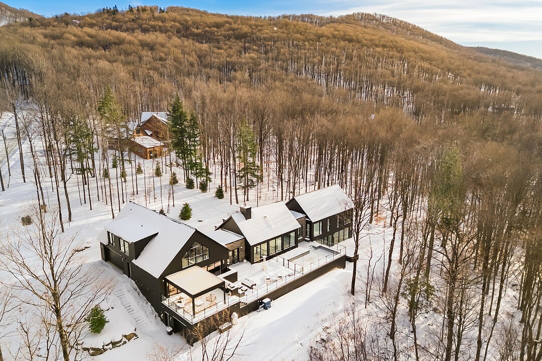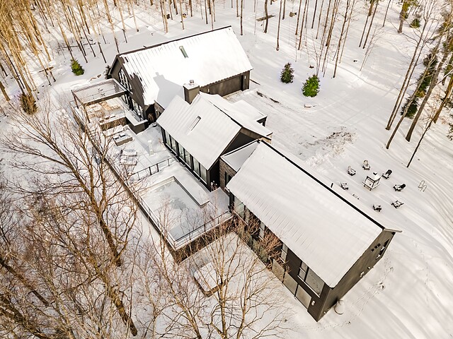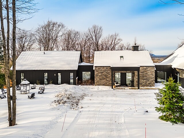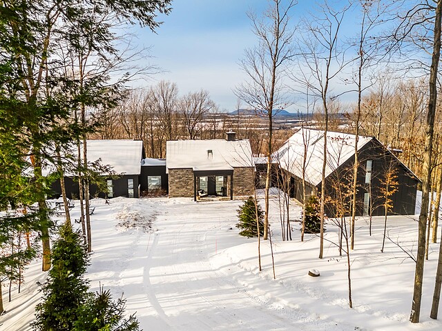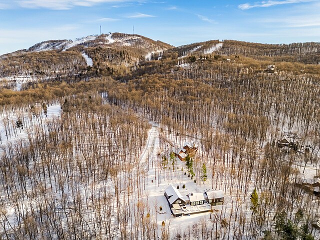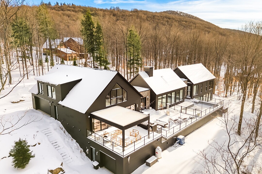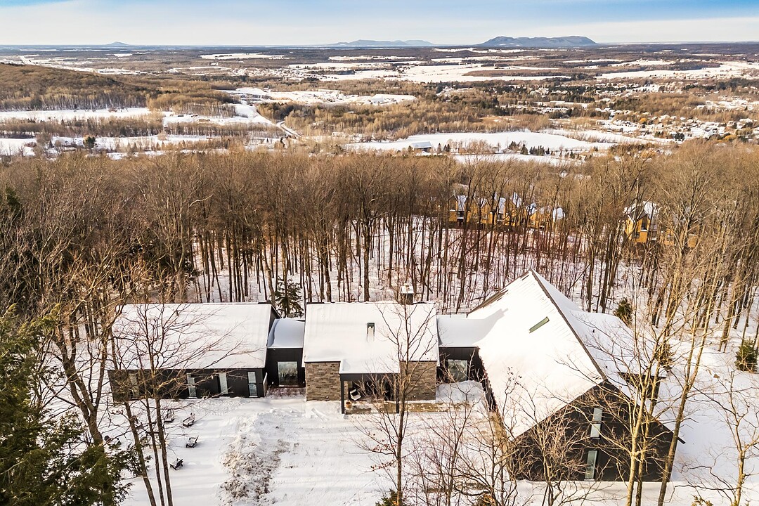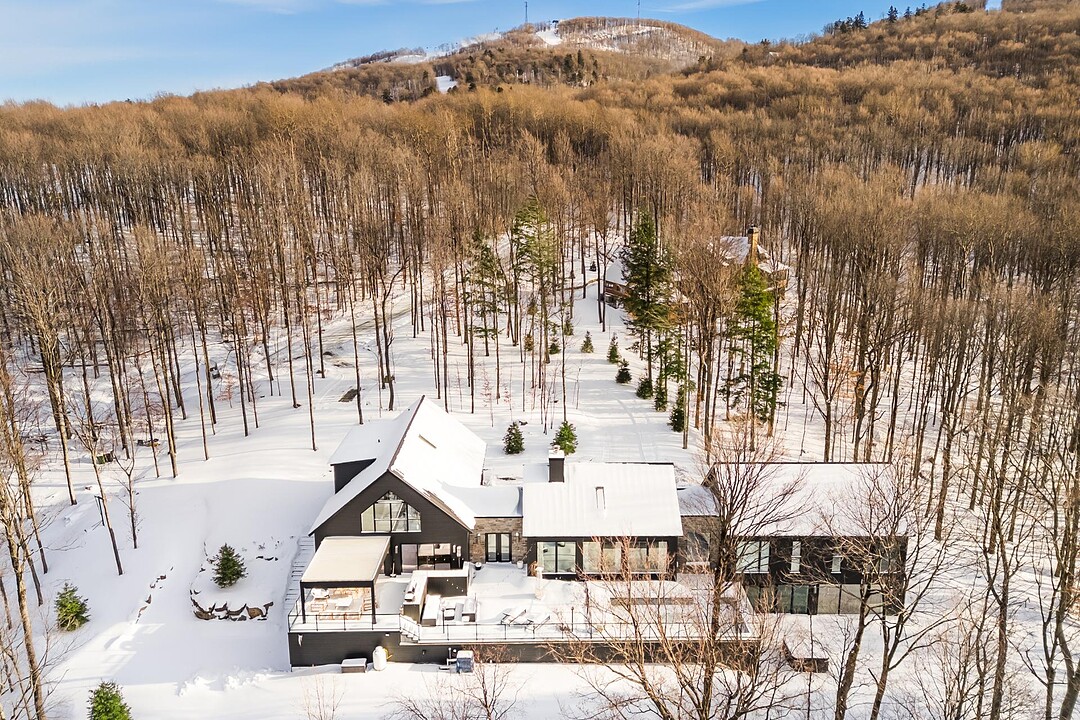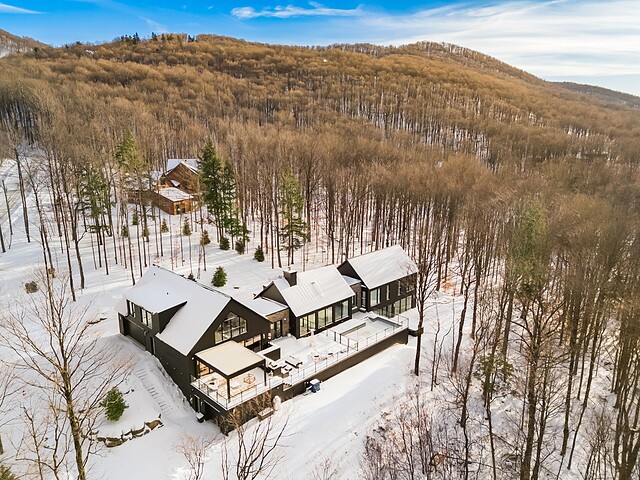 Nestled on the mountainside, on a private lot of nearly 2.6 acres, this exclusive residence embodies architectural refinement in the heart of nature! With over 4,600 sq. ft. of living space, the home unfolds into vast, light-filled areas designed to welcome family and guests in a warm yet distinguished atmosphere. Every element has been carefully selected, from noble materials to a design built to the highest standards. An incomparable setting with upscale outdoor living, seasonal views, and direct access to the slopes (SKI-IN/SKI-OUT)! A truly exceptional property in the heart of Bromont's ski mountain!