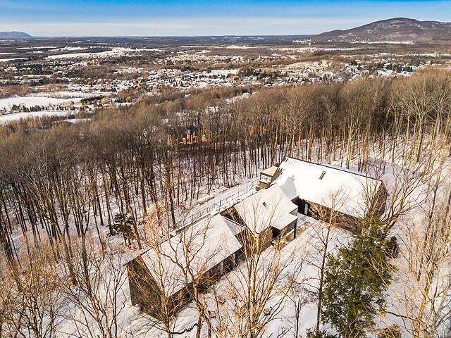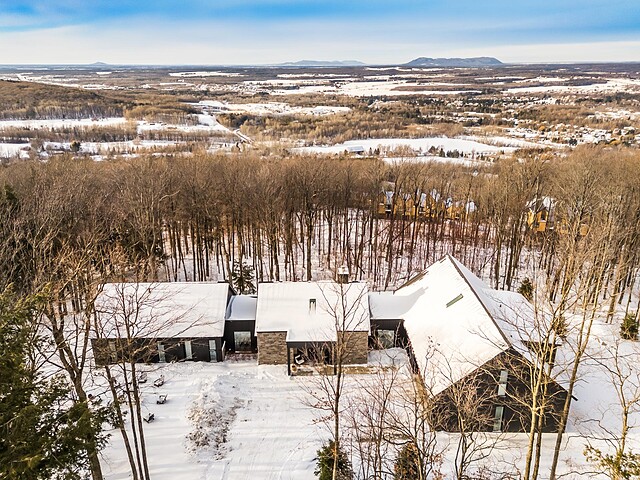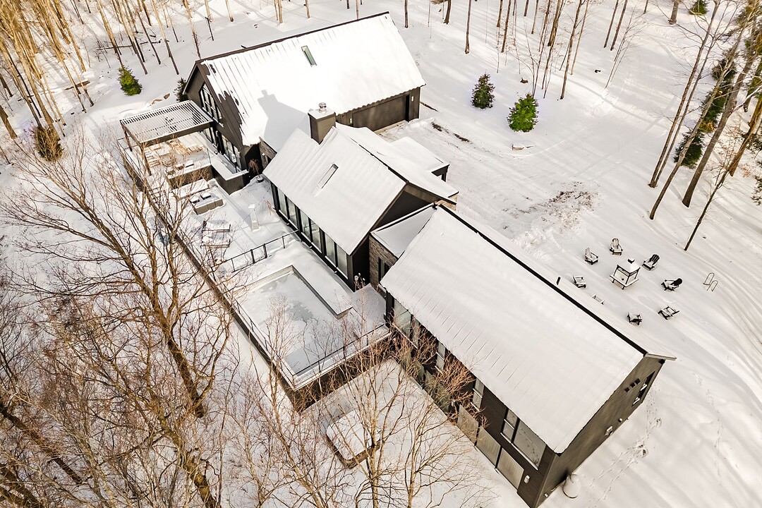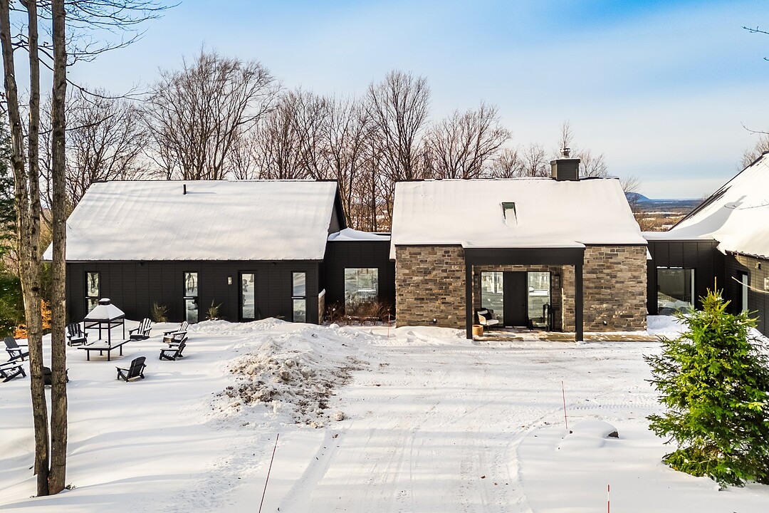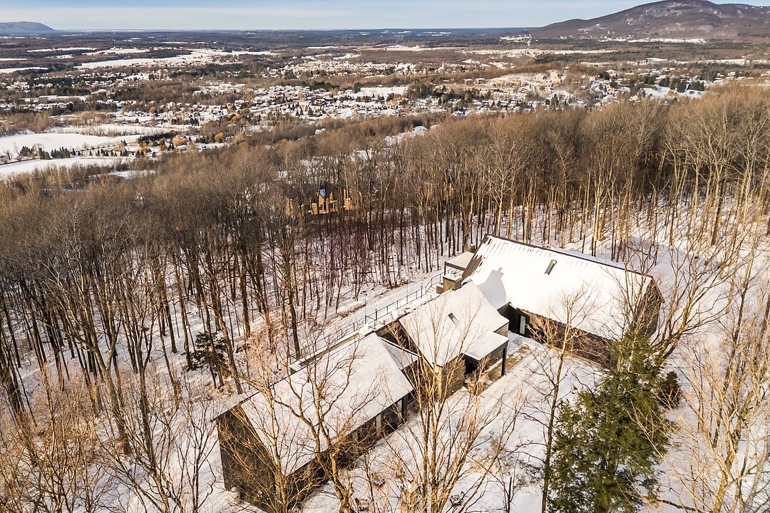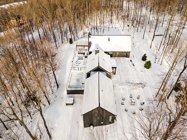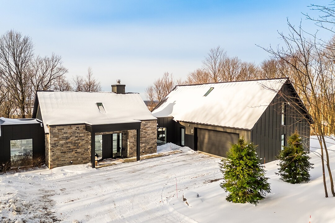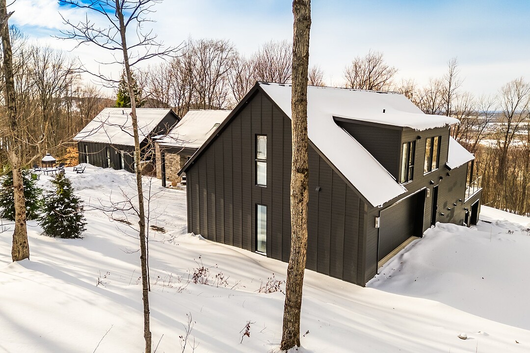 Nestled on the mountainside, on a private lot of nearly 2.6 acres, this exclusive residence embodies architectural refinement in the heart of nature! With over 4,600 sq. ft. of living space, the home unfolds into vast, light-filled areas designed to welcome family and guests in a warm yet distinguished atmosphere. Every element has been carefully selected, from noble materials to a design built to the highest standards. An incomparable setting with upscale outdoor living, seasonal views, and direct access to the slopes (SKI-IN/SKI-OUT)! A truly exceptional property in the heart of Bromont's ski mountain!