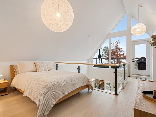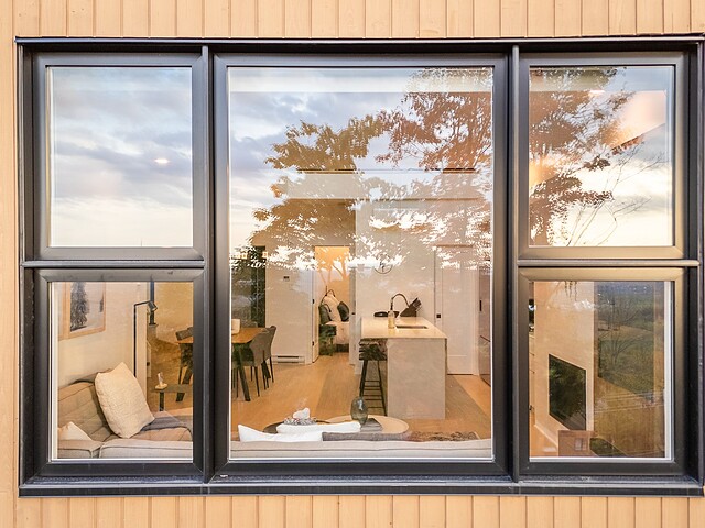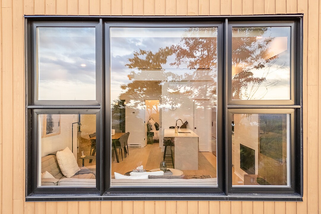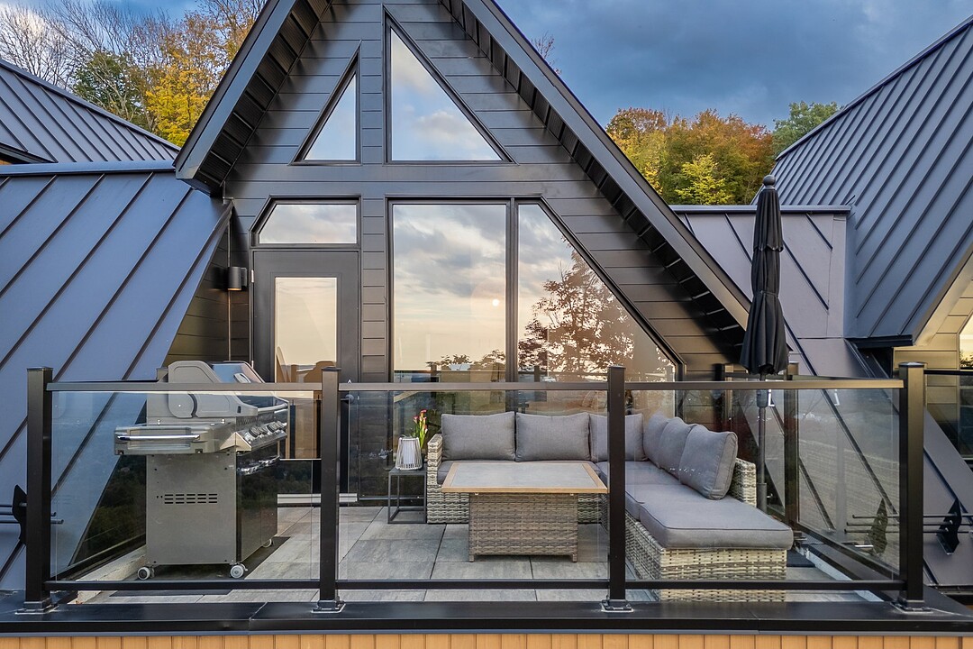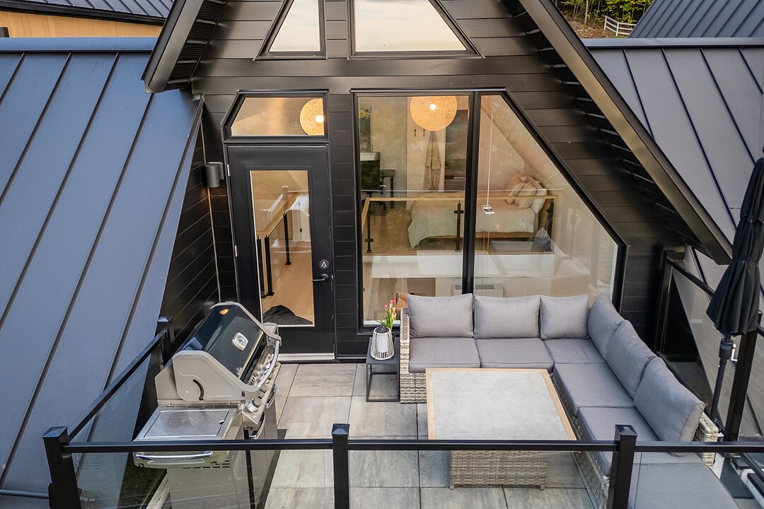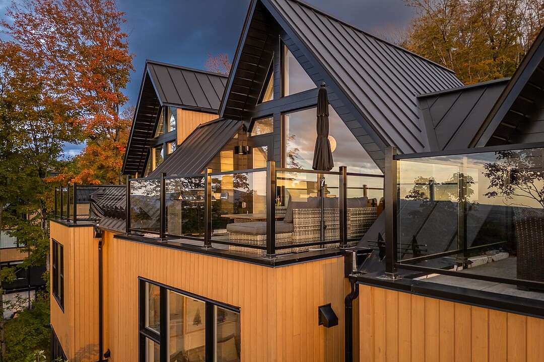 Arborescence Condos Refuges offers an eco-responsible living environment with sleek Scandinavian architecture.