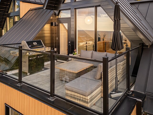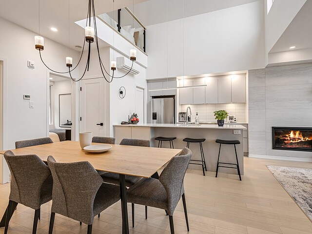 This high-end construction impresses with panoramic views of the valley and breathtaking sunsets! Its refined décor is enhanced by exceptional natural light thanks to large windows.