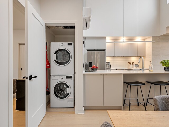 The condo offers 2 bedrooms and 2 bathrooms, including one with heated floors on the main level. A spacious terrace allows you to fully enjoy the surrounding landscape.