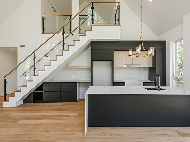 Exceptional light and modern comfort. Open-plan living on two floors. Convivial kitchen with beautiful central island and dekton countertop.
