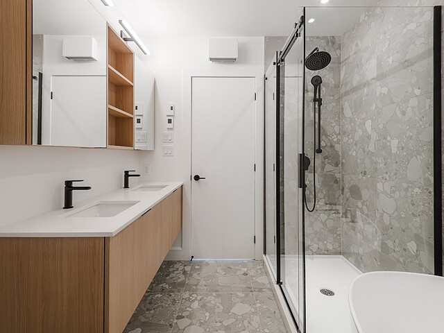 FEATURES: - "Onyx" color palette - Dekton countertop - Ingineering floor - Heated floors in 2 bathrooms - Medicine cabinet/mirror in bathrooms - Natural gas outlet for BBQ included - Black faucets