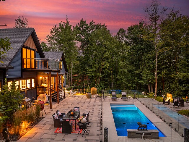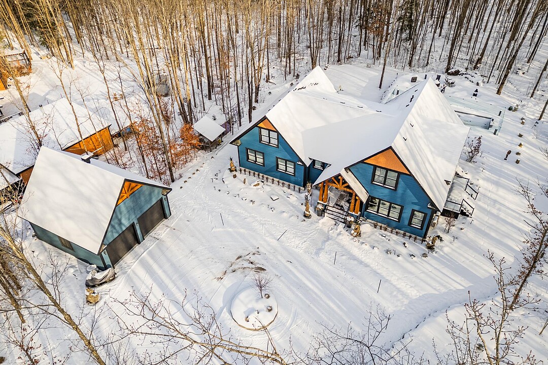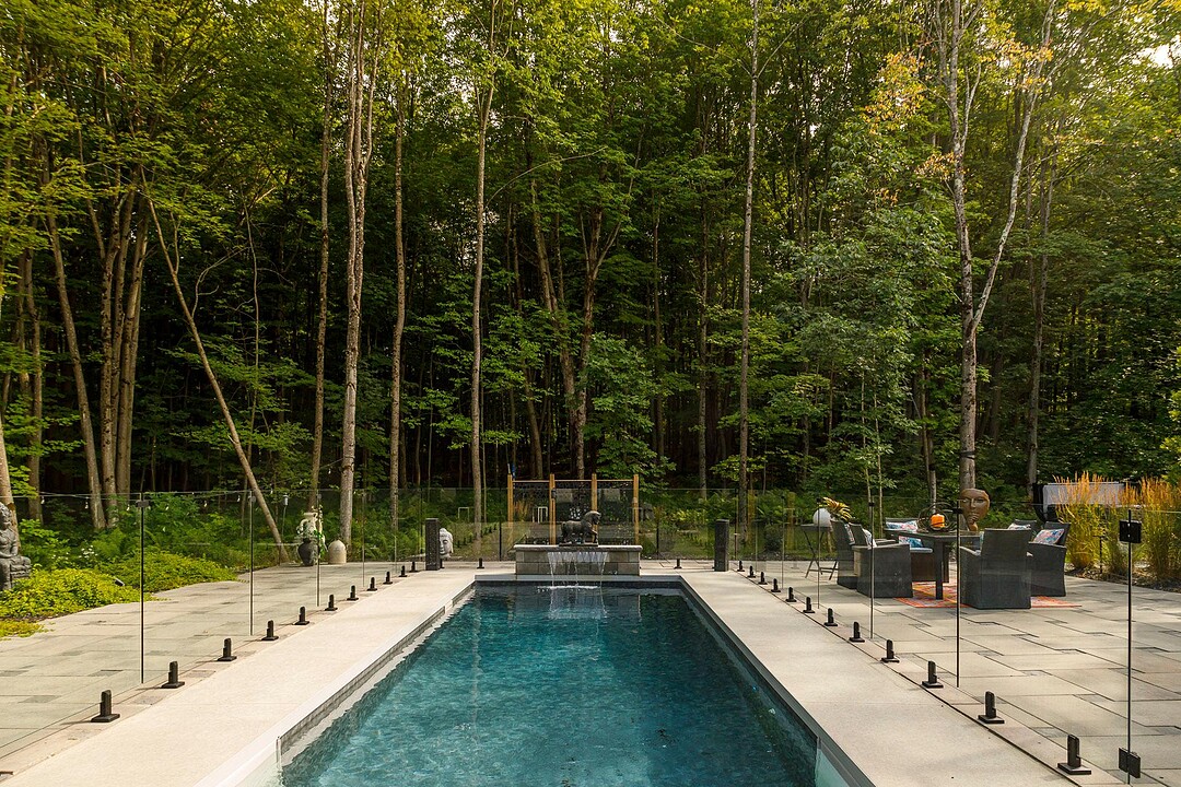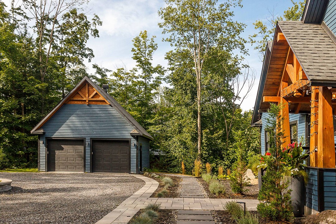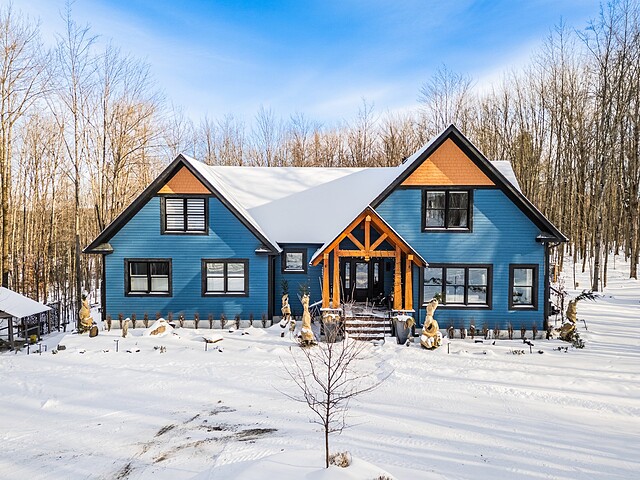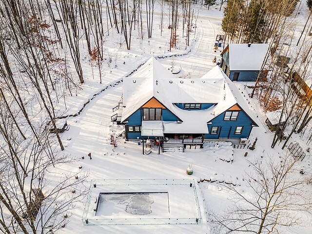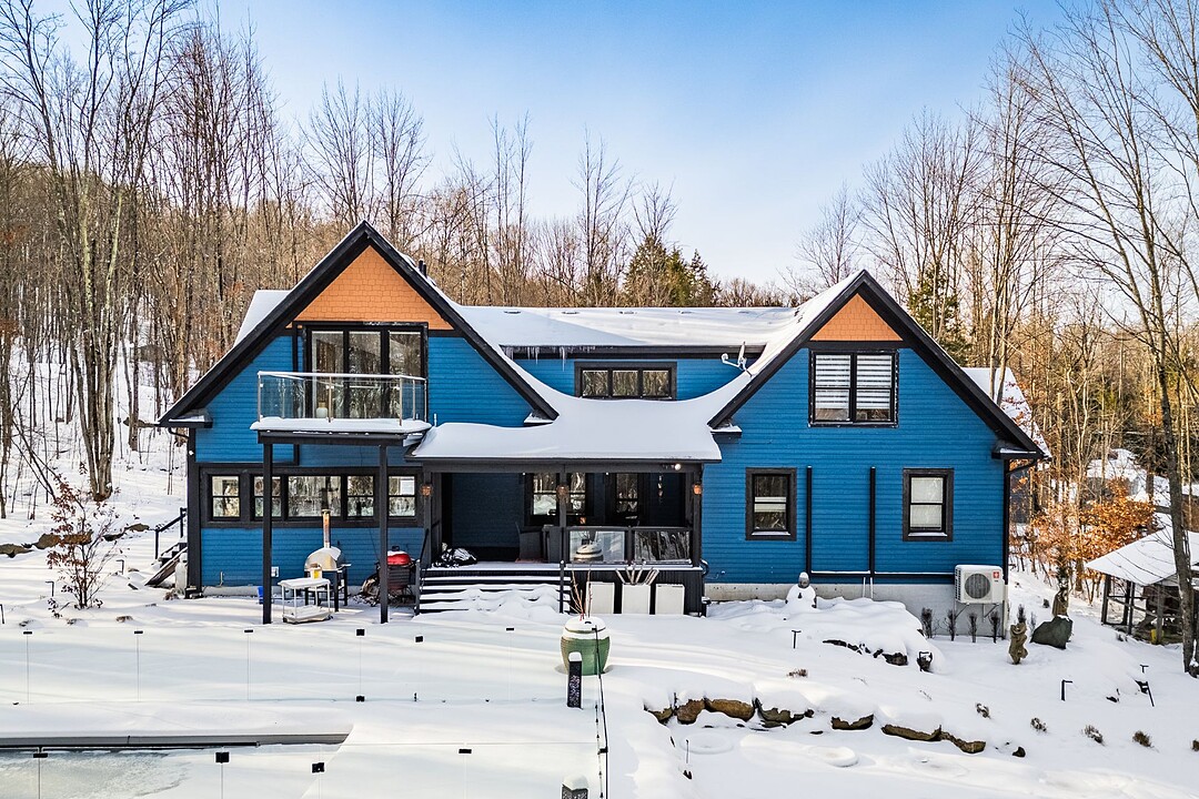Sumptuous residence just steps away from Bromont's ski mountain! Combining elegance and comfort, this uniquely designed home stands out with its generous volumes and warm atmosphere. Perfectly integrated into its natural surroundings, it offers breathtaking views of nature and unparalleled privacy, all while remaining close to amenities. The outdoor layout, designed for relaxation and entertaining, features a pool, a spa, expansive terraces, a fire pit area, and a double garage. All of this is set on a beautifully wooded lot of over 2 acres, providing a peaceful and exceptional living environment. A must-see!