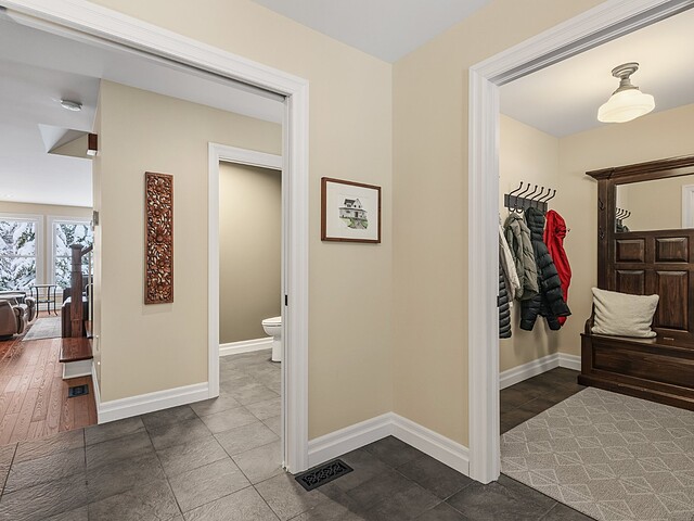 The main level also includes a powder room as well as a large entry walk-in of the mudroom type.