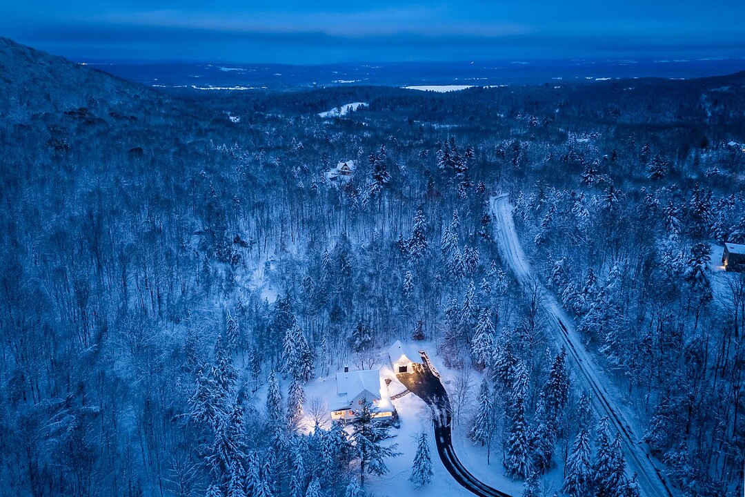 At the end of a long private driveway, tucked away from view, this exceptional property unfolds across nearly 6 acres of land. Meticulously built with high-end materials, it stands out for its timeless architecture and warm design that blend rustic charm with modern touches. Expansive windows frame the surrounding nature, offering a spectacular backdrop in every season. Backing onto Bromont Mountain, the site features trails, a stream, and direct access to the C1 trail. Located on a quiet dead-end street, it ensures complete privacy and tranquility. A truly unique residence worth discovering!