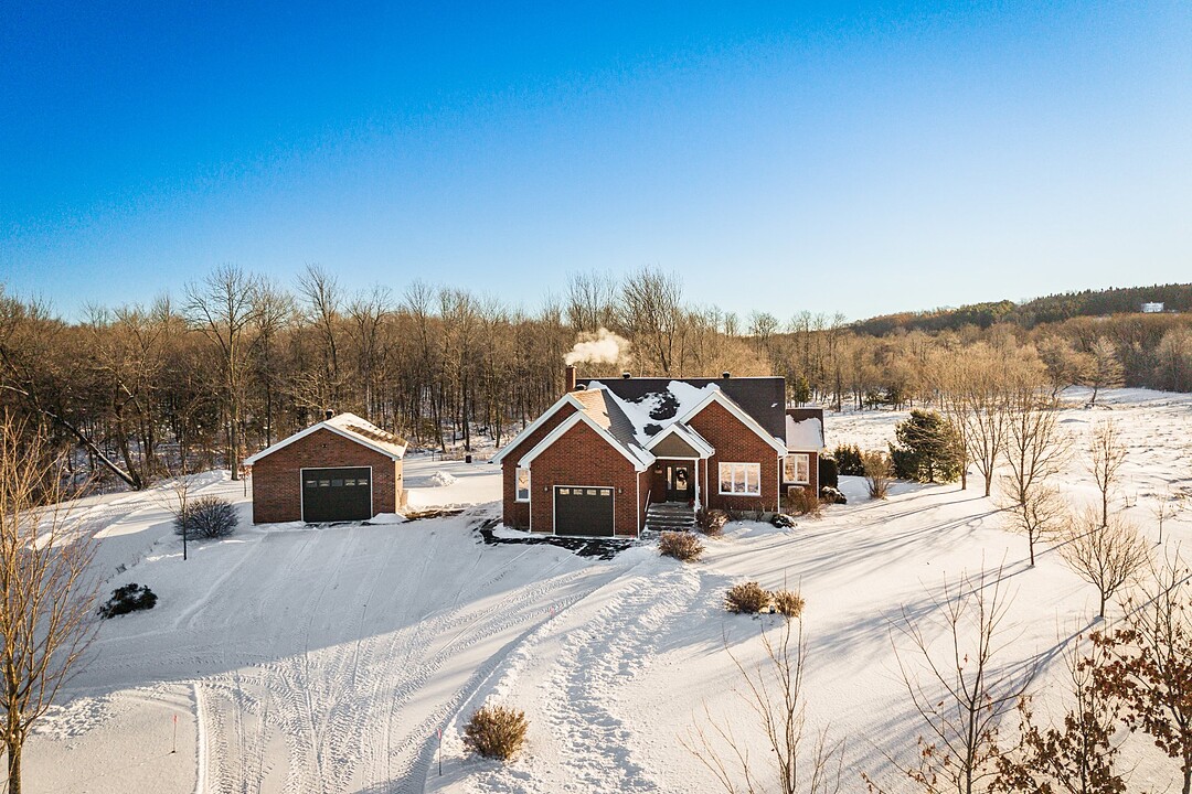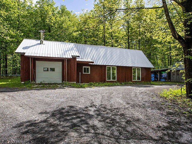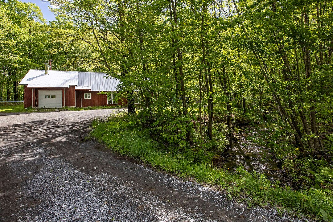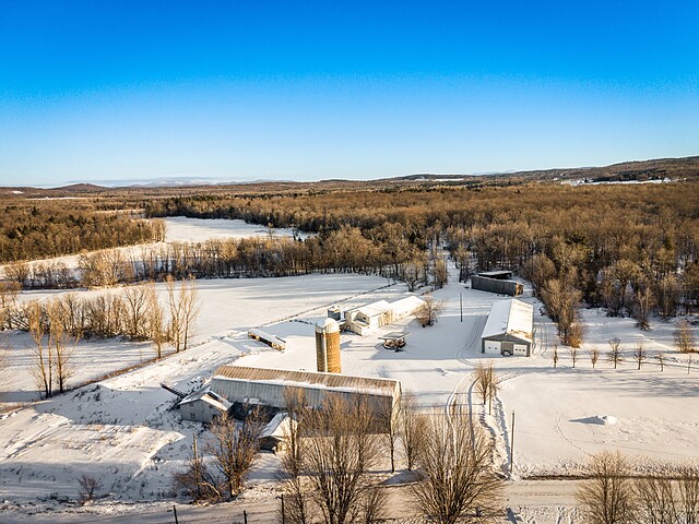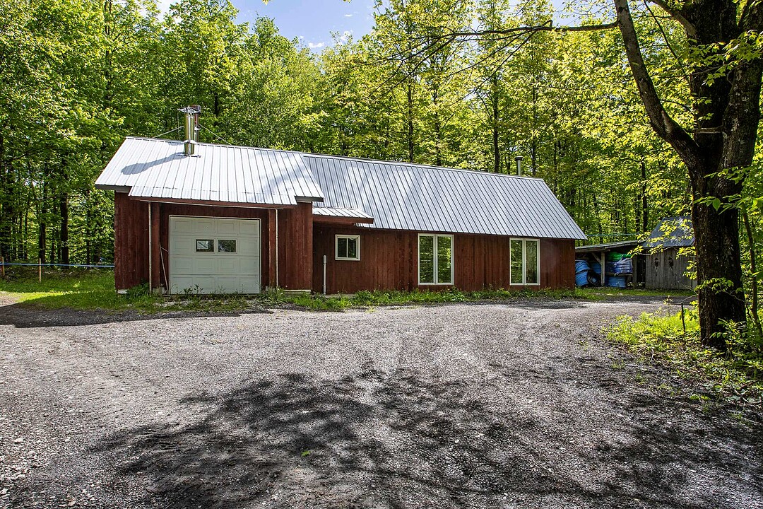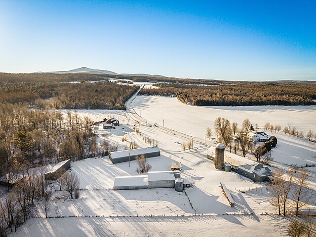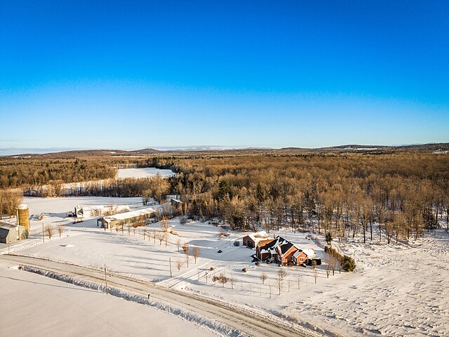 Exceptional property nestled on over 106 acres, just minutes from the charming village of Dunham. Meticulously maintained, this residence welcomes you into a private and peaceful setting, surrounded by mature trees, a private pond, and offering breathtaking views of the surrounding nature. The property includes several agricultural buildings, such as a barn, hangars, and a maple grove -- ideal for those with a passion for country living or agricultural projects. The home features radiant floors for optimal comfort, as well as an attached garage and a detached garage. A private country estate, offering tranquility while remaining close to al