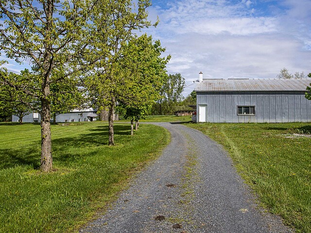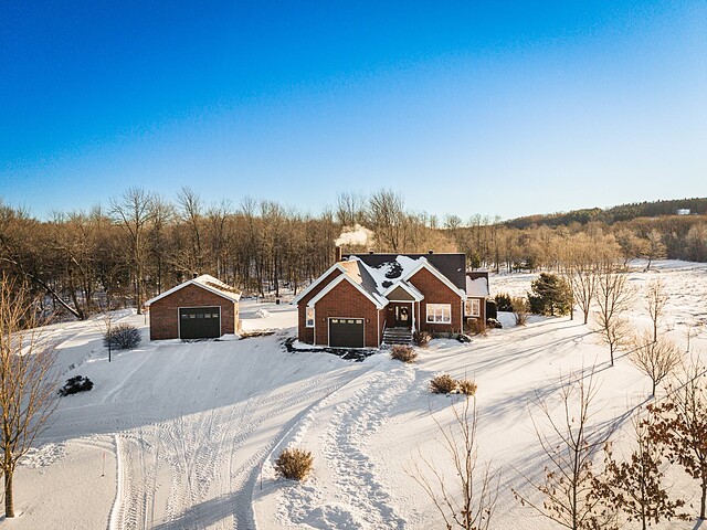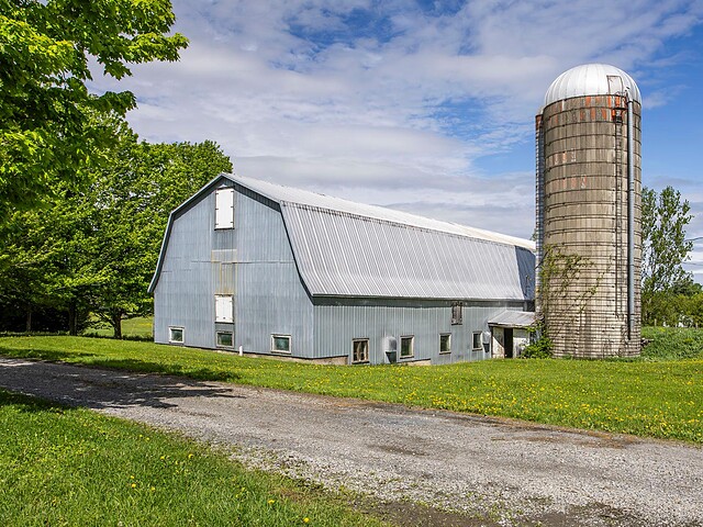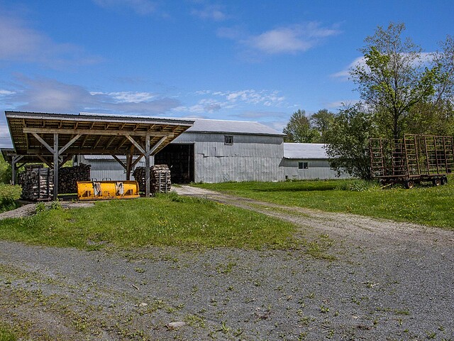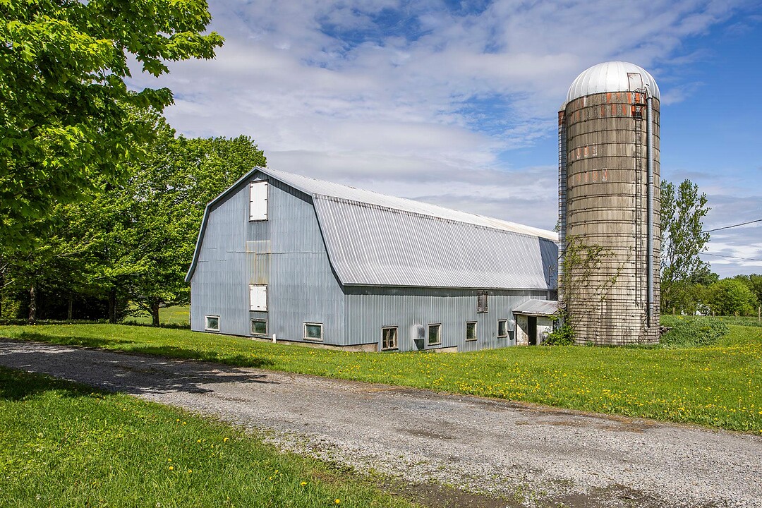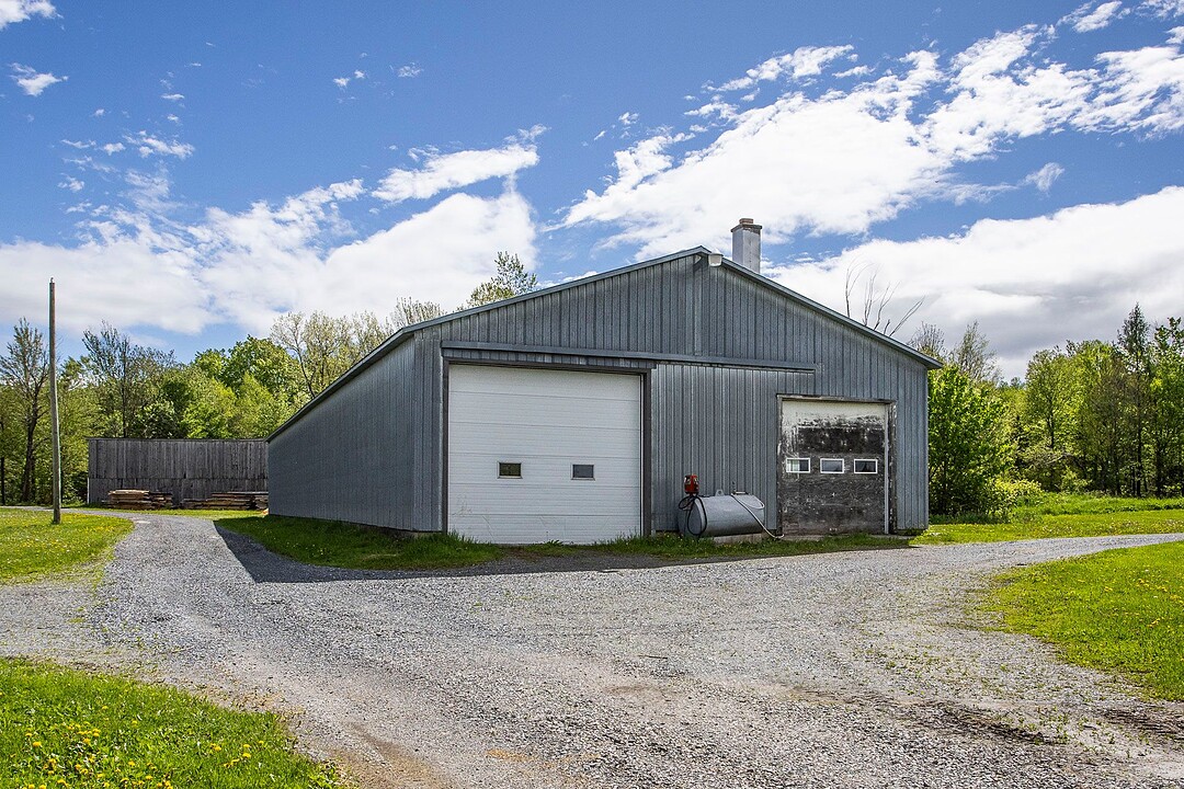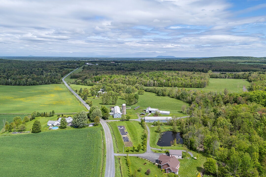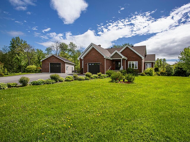 Exceptional property nestled on over 106 acres, just minutes from the charming village of Dunham. Meticulously maintained, this residence welcomes you into a private and peaceful setting, surrounded by mature trees, a private pond, and offering breathtaking views of the surrounding nature. The property includes several agricultural buildings, such as a barn, hangars, and a maple grove -- ideal for those with a passion for country living or agricultural projects. The home features radiant floors for optimal comfort, as well as an attached garage and a detached garage. A private country estate, offering tranquility while remaining close to al