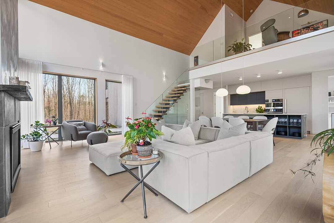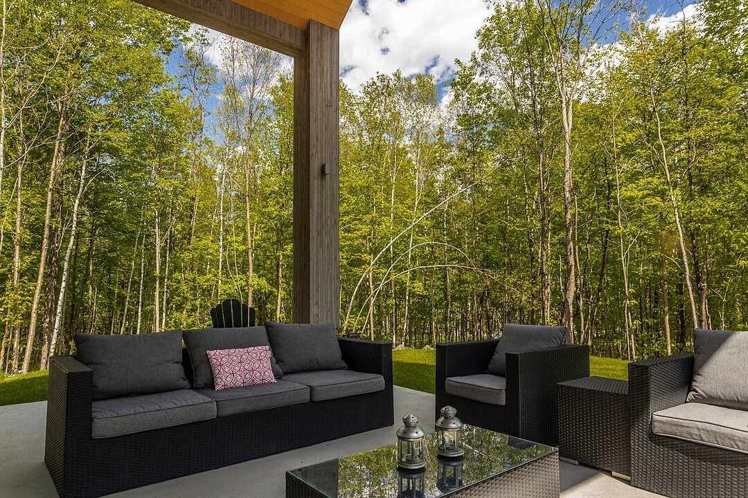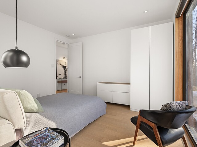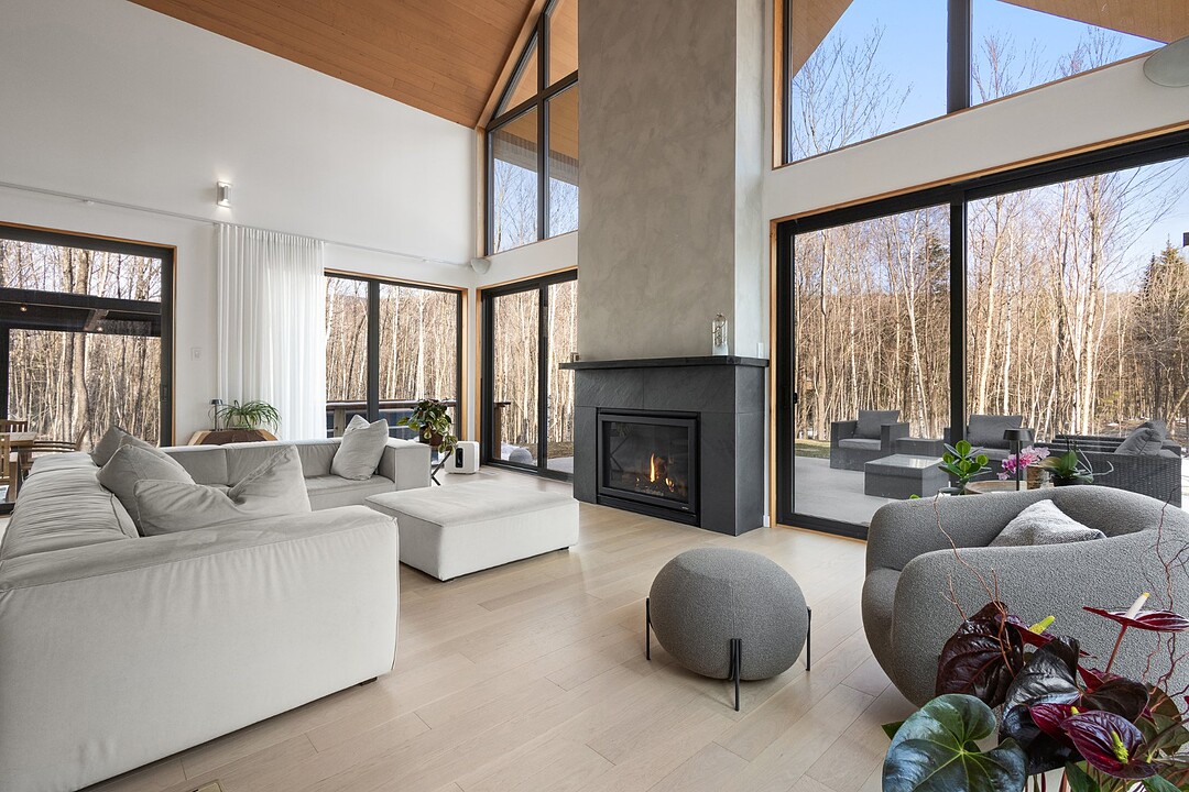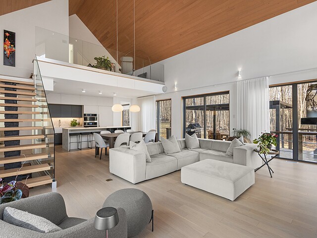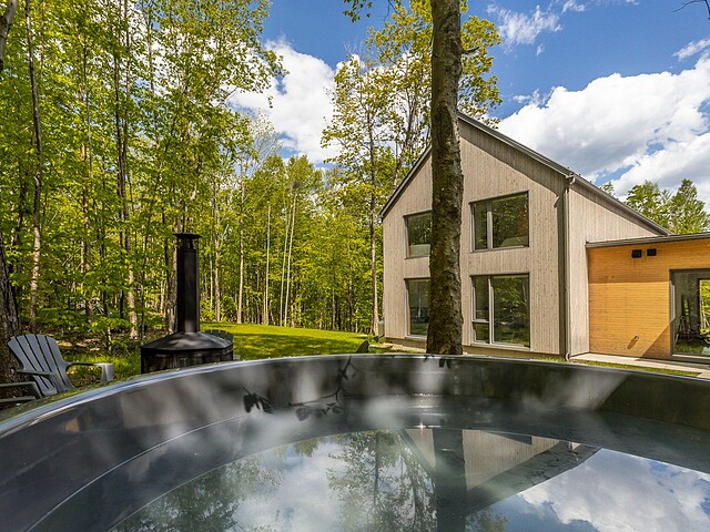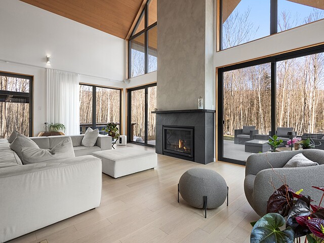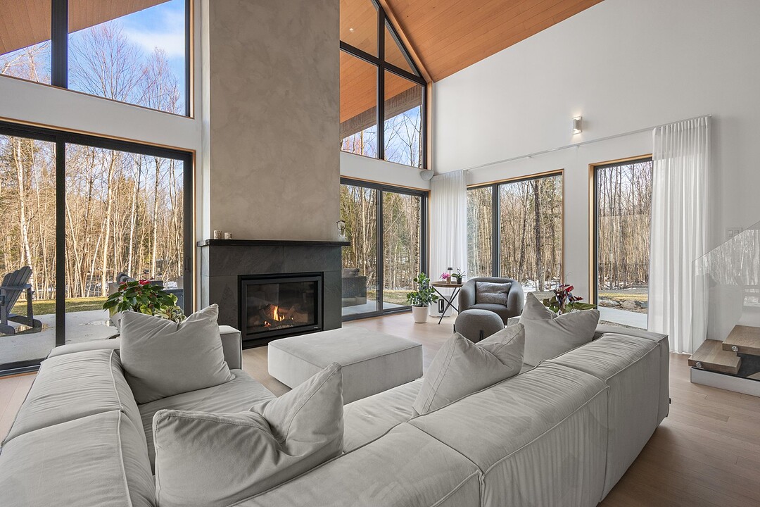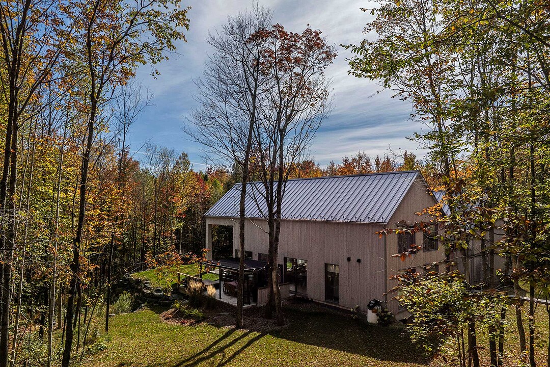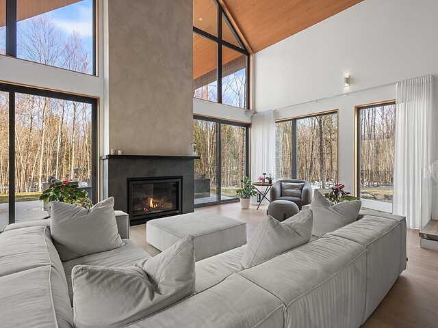 Prestigious property in the heart of nature! Recently built with a Scandinavian and modern design, it offers a warm and refined atmosphere. You'll be captivated by its impressive volumes, cathedral ceilings nearly 25 feet high, 4 bedrooms, and expansive terraces. Remarkable design and high-end materials! Enjoy notarized access to Lake Orford, space for your watercraft, as well as a tennis court. Your opportunity to acquire an exceptional property in a unique living environment, combining modernity, comfort, and nature!