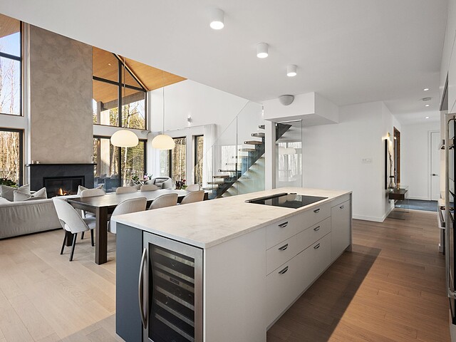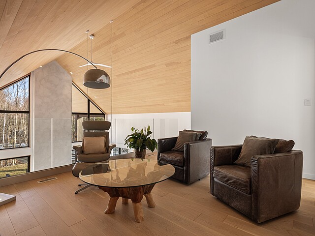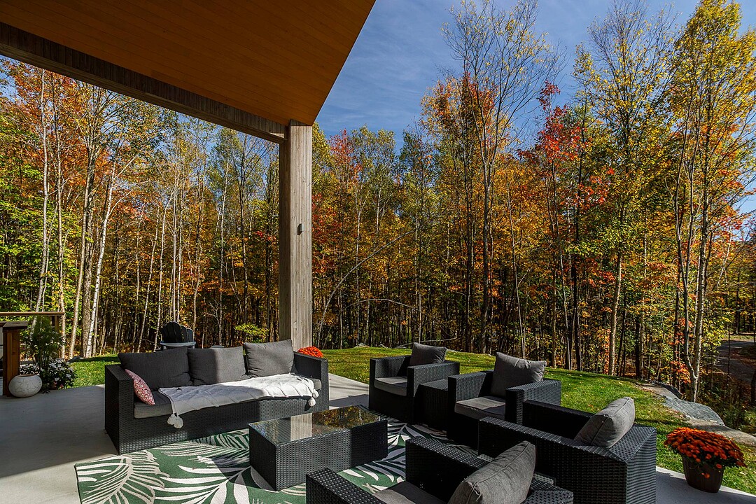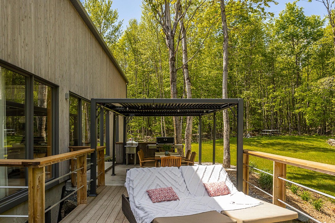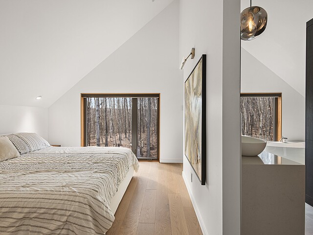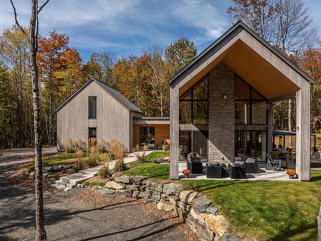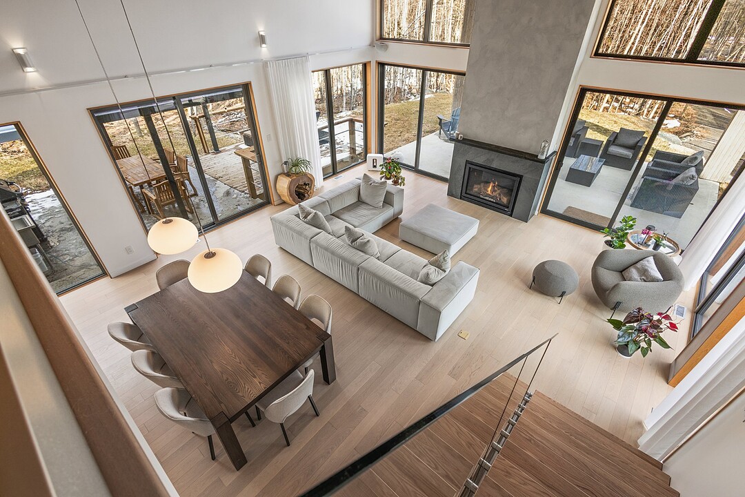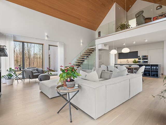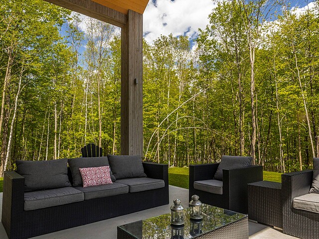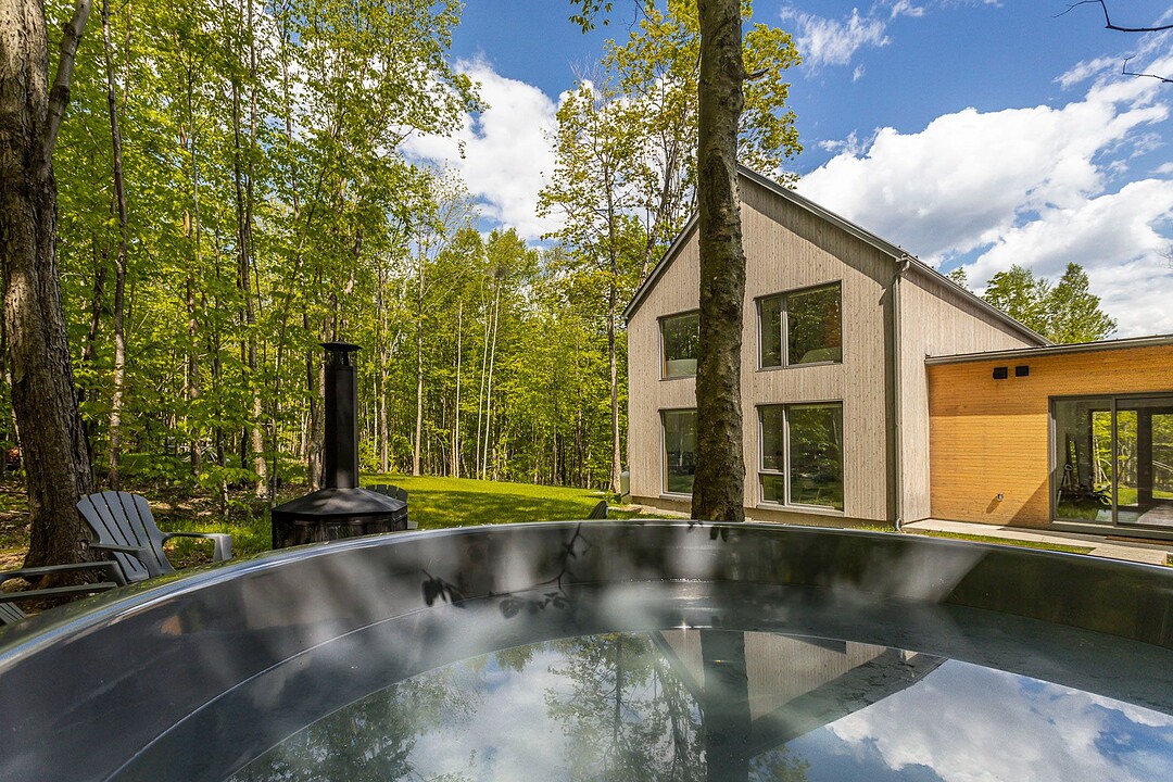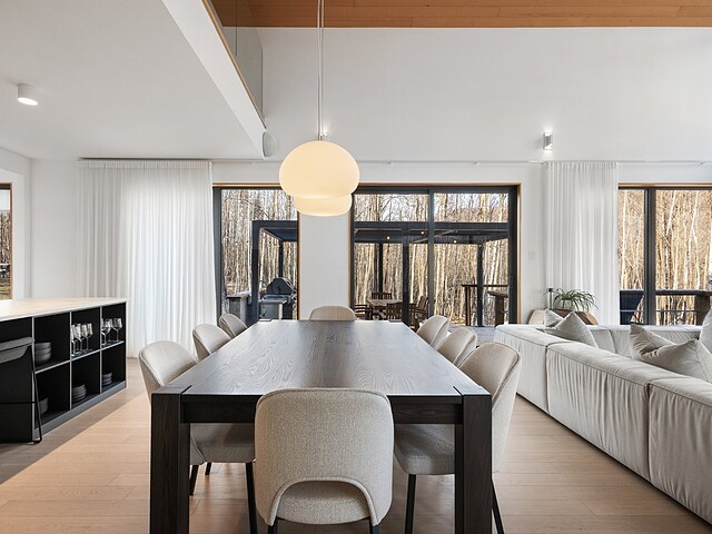Prestigious property in the heart of nature! Recently built with a Scandinavian and modern design, it offers a warm and refined atmosphere. You'll be captivated by its impressive volumes, cathedral ceilings nearly 25 feet high, 4 bedrooms, and expansive terraces. Remarkable design and high-end materials! Enjoy notarized access to Lake Orford, space for your watercraft, as well as a tennis court. Your opportunity to acquire an exceptional property in a unique living environment, combining modernity, comfort, and nature!