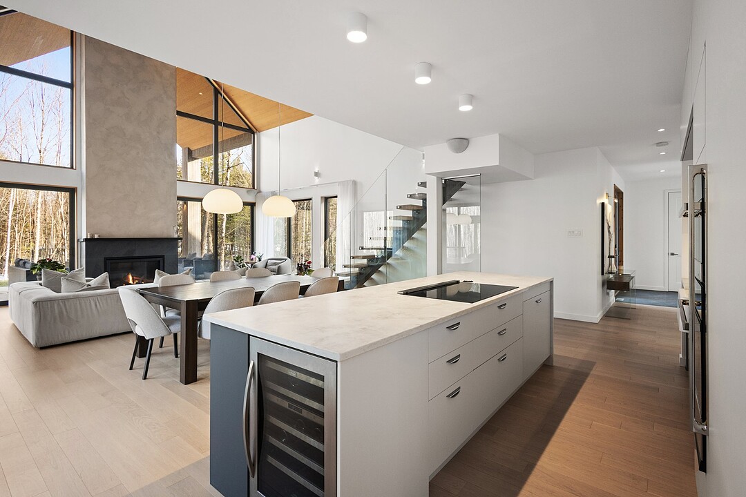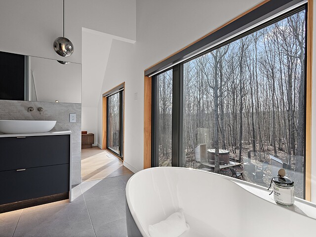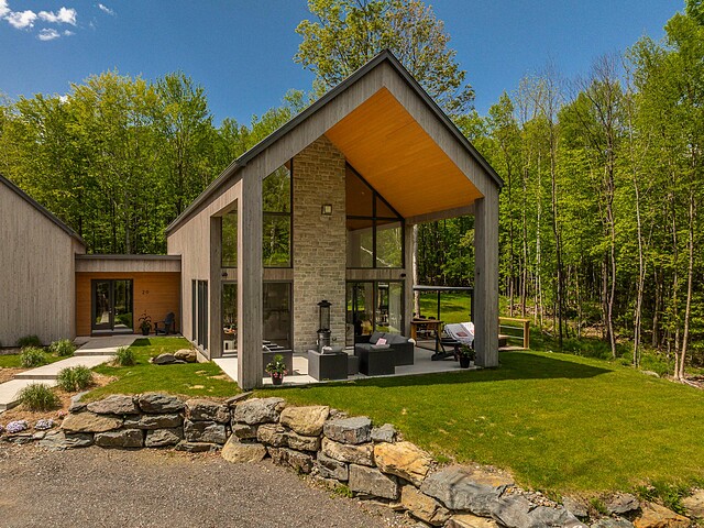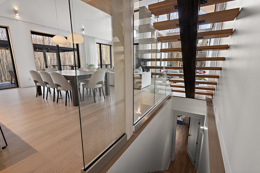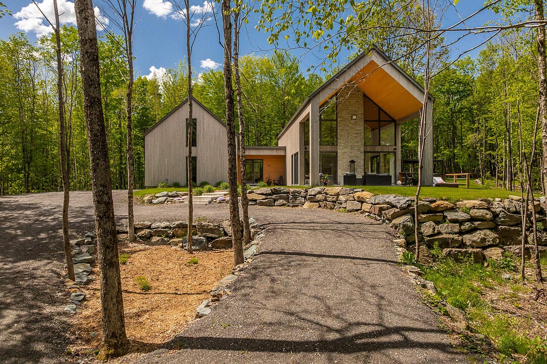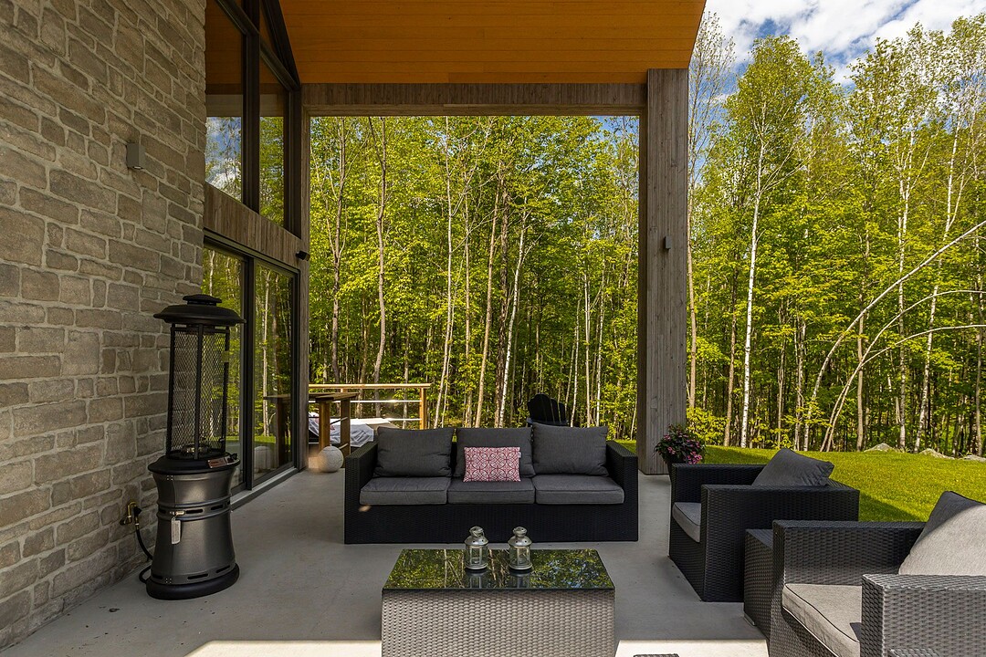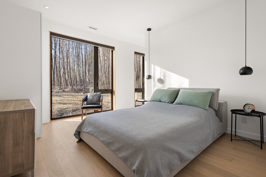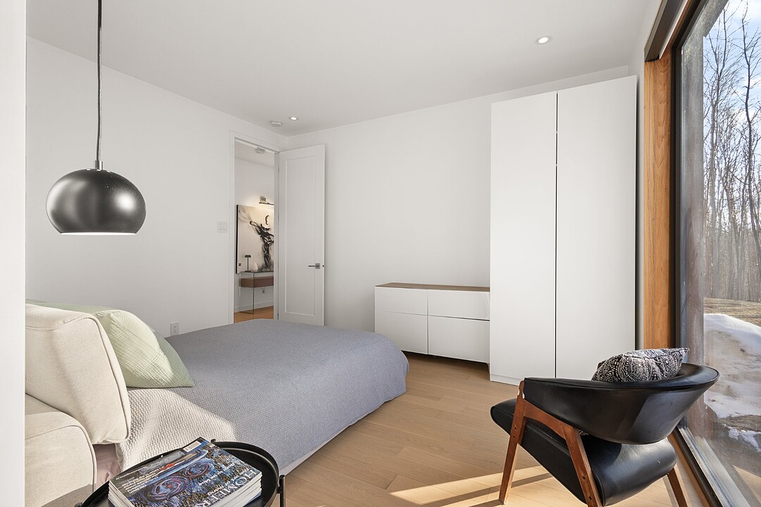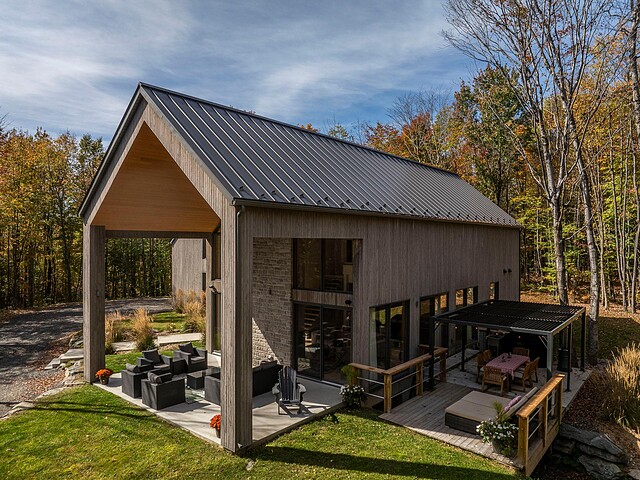 Prestigious property in the heart of nature! Recently built with a Scandinavian and modern design, it offers a warm and refined atmosphere. You'll be captivated by its impressive volumes, cathedral ceilings nearly 25 feet high, 4 bedrooms, and expansive terraces. Remarkable design and high-end materials! Enjoy notarized access to Lake Orford, space for your watercraft, as well as a tennis court. Your opportunity to acquire an exceptional property in a unique living environment, combining modernity, comfort, and nature!