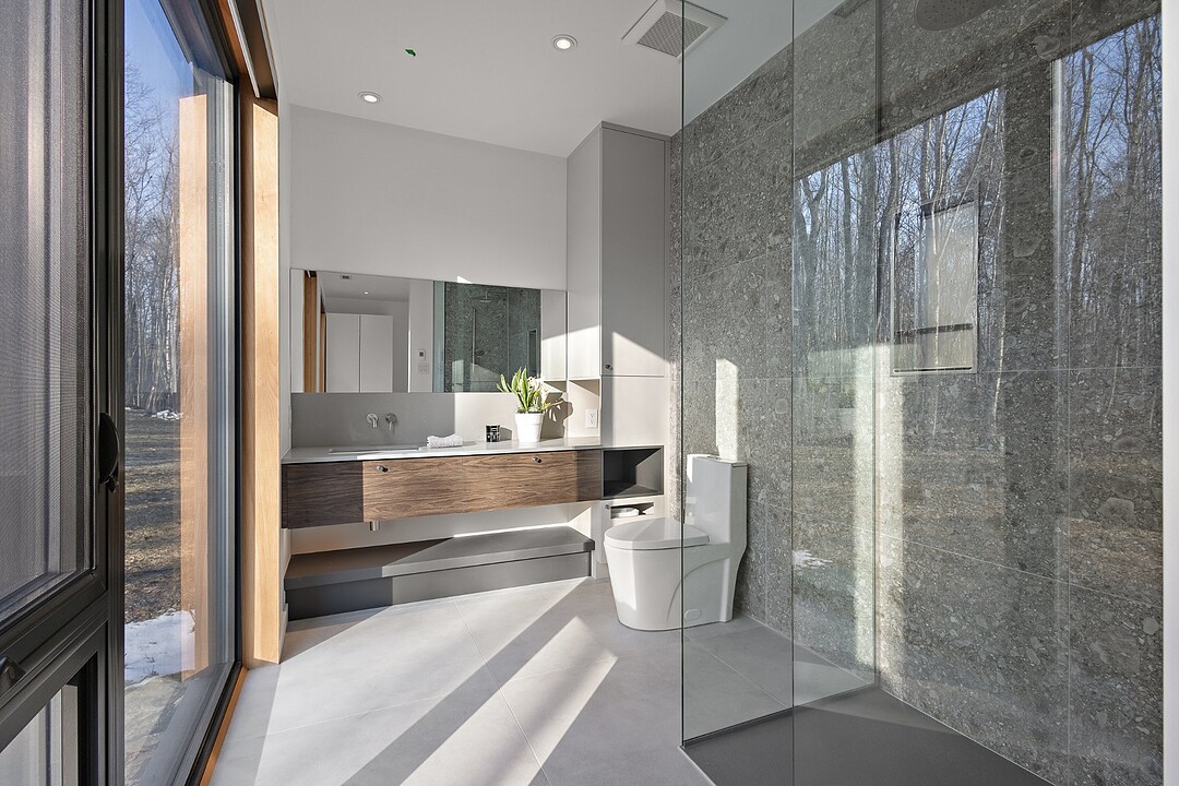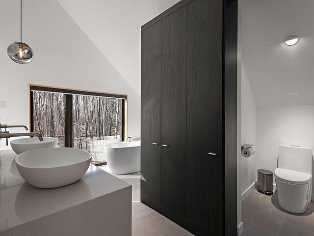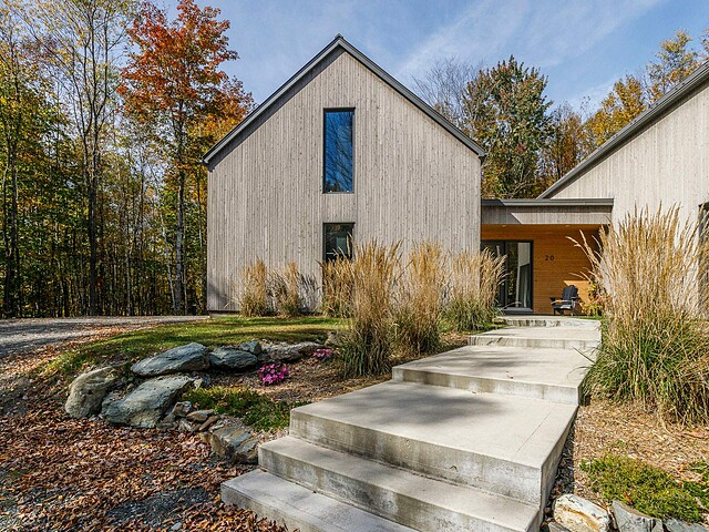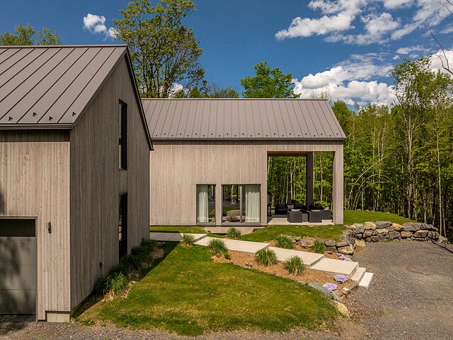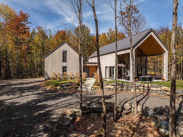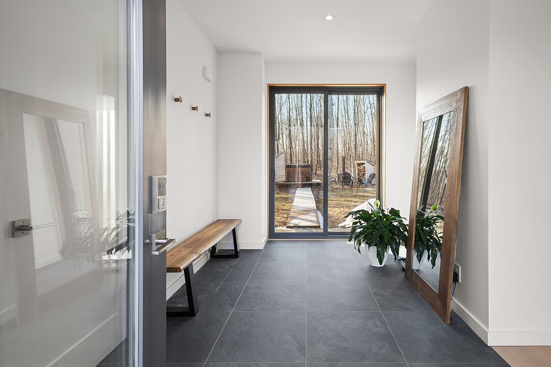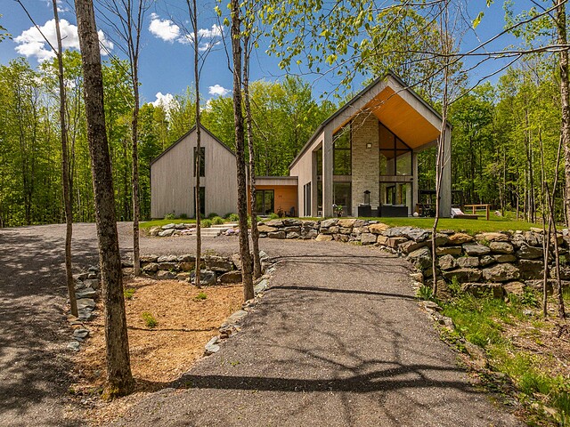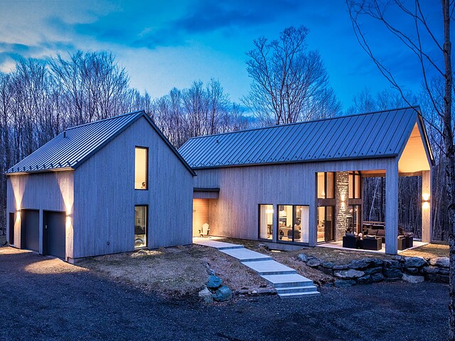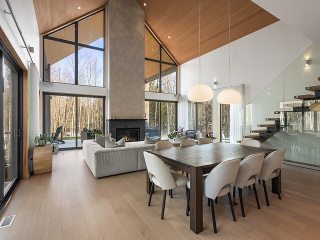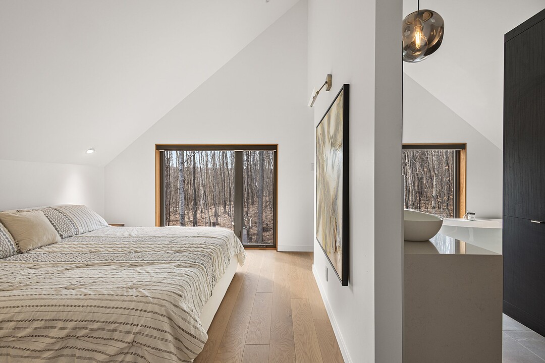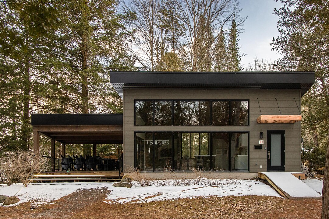Prestigious property in the heart of nature! Recently built with a Scandinavian and modern design, it offers a warm and refined atmosphere. You'll be captivated by its impressive volumes, cathedral ceilings nearly 25 feet high, 4 bedrooms, and expansive terraces. Remarkable design and high-end materials! Enjoy notarized access to Lake Orford, space for your watercraft, as well as a tennis court. Your opportunity to acquire an exceptional property in a unique living environment, combining modernity, comfort, and nature!