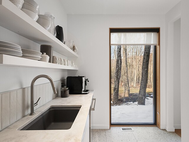 **Additional Features:** - Electric heated floors (ceramic and basement) - Scandinavian wood spa with optional outdoor shower - Loft with separate entrance and plumbing in place - Central electric system - Generator panel - Private access road - Durable sheet metal roof - Approximately 2,775 sq. ft. of living space