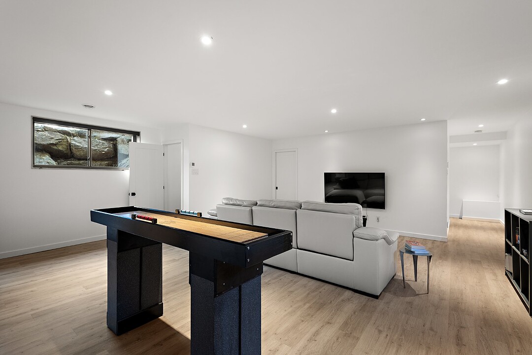 The finished basement features a spacious family room, two bedrooms, a full bathroom, and a laundry room -- an ideal space for family life or entertaining guests.