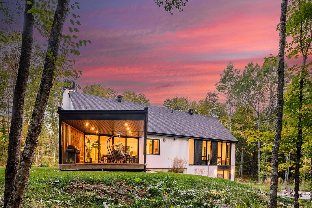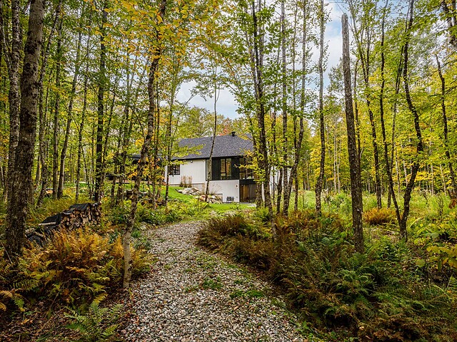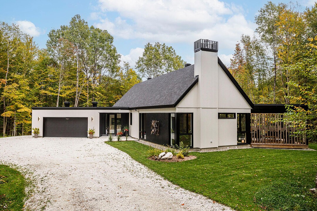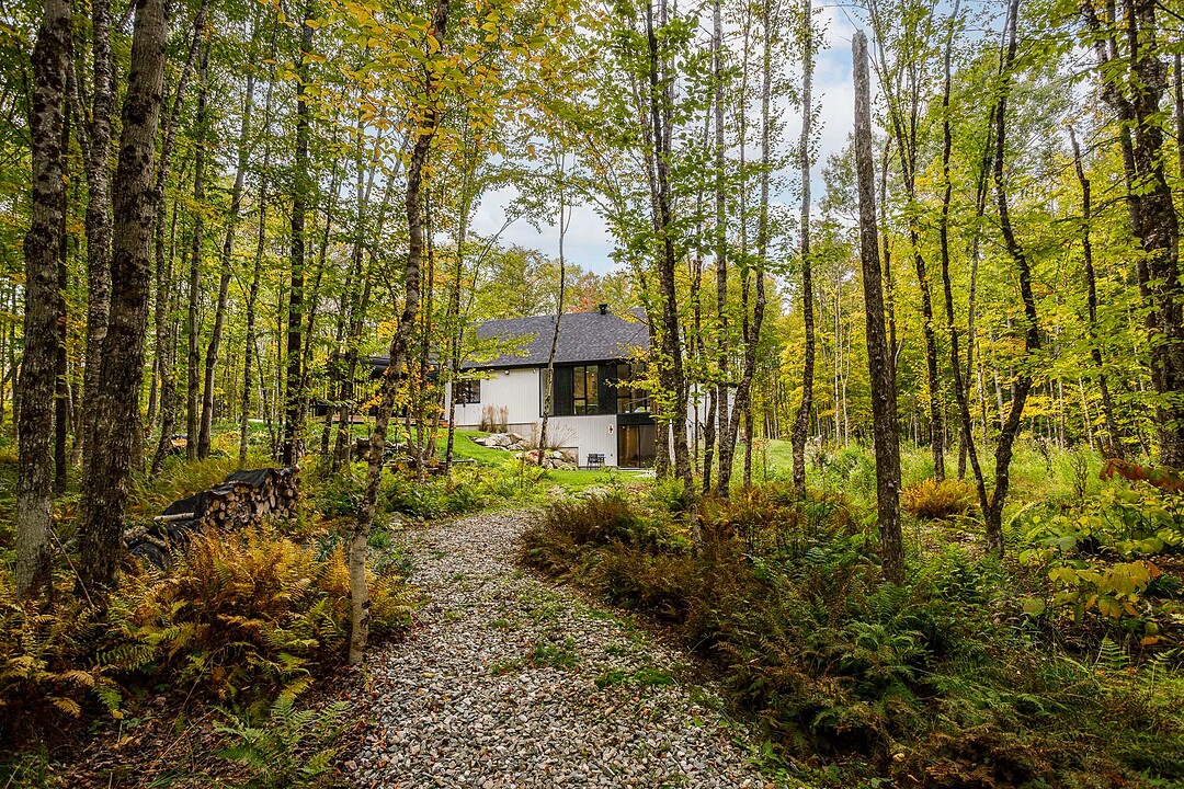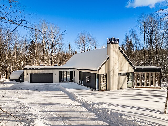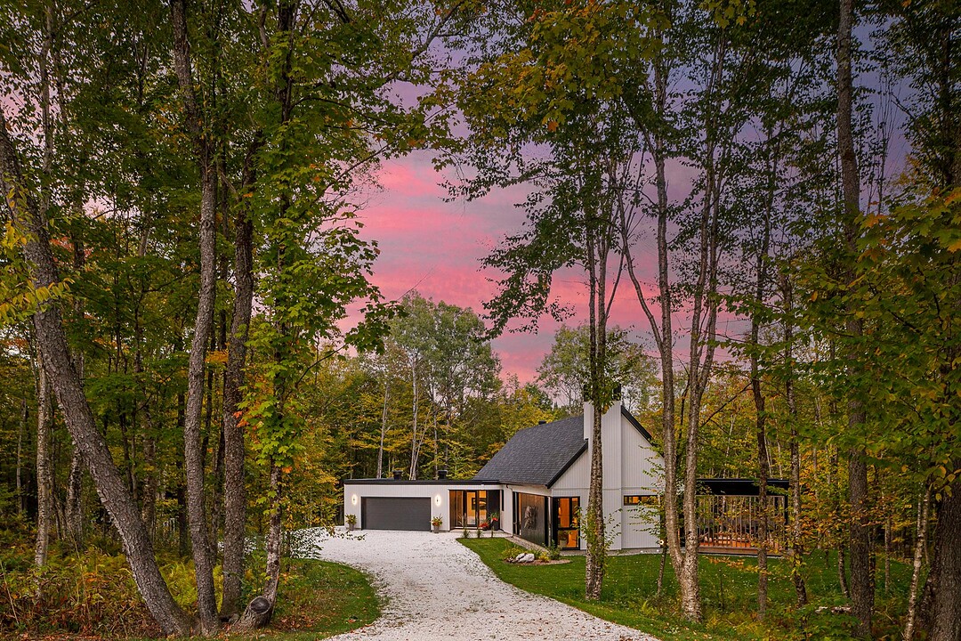 Exceptional bungalow nestled on a private 2.5-acre lot! Bordered by a beautiful river and landscaped trails, this true nature retreat offers unmatched tranquility. Its thoughtful design includes a private master wing, an open living area with cathedral ceilings and expansive windows, as well as a functional garden level. The clean lines and high-end materials create an atmosphere that is both warm and refined. Located in Le Boisé du Lac Parker, you will enjoy complete privacy while remaining close to amenities and outdoor activities!