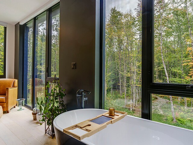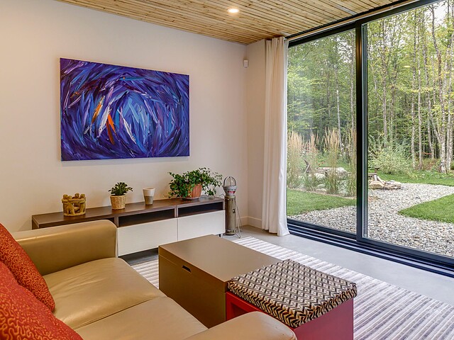 Bordered by a beautiful river and with no rear neighbors, this property stands out for its architecture and its bucolic setting, enhanced with trails and relaxation areas -- an ideal haven for nature lovers!
