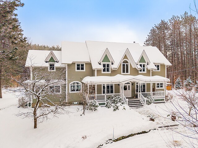 Stunning residence located in the prestigious Domaine Sugar Hill, set on 7.5 acres in an absolutely splendid setting. The entrance to the private estate is lined with winding paths, stone bridges, and small private ponds. A stable and a tennis court are available to residents. The main house, nestled in a lush green setting, is both spacious and inviting. There is also a large detached garage with a charming guest loft above to accommodate your visitors. The beautifully landscaped grounds add to the magic of the property. A rare opportunity to own a home in one of Lac-Brome's most prestigious areas!