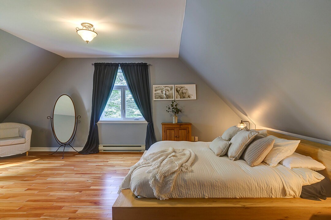 You'll also enjoy a charming guest loft with both interior and exterior access. Complete with a living room, a bedroom, and an ensuite bathroom (heated floors and sauna), it's the ideal retreat for your visitors.