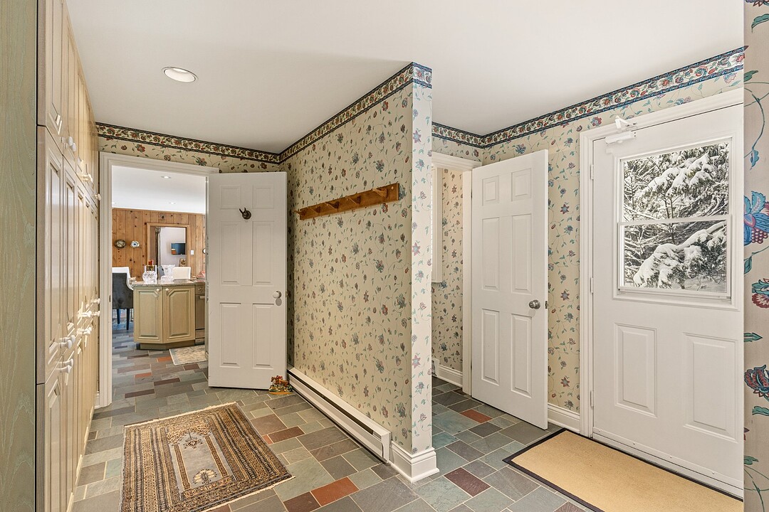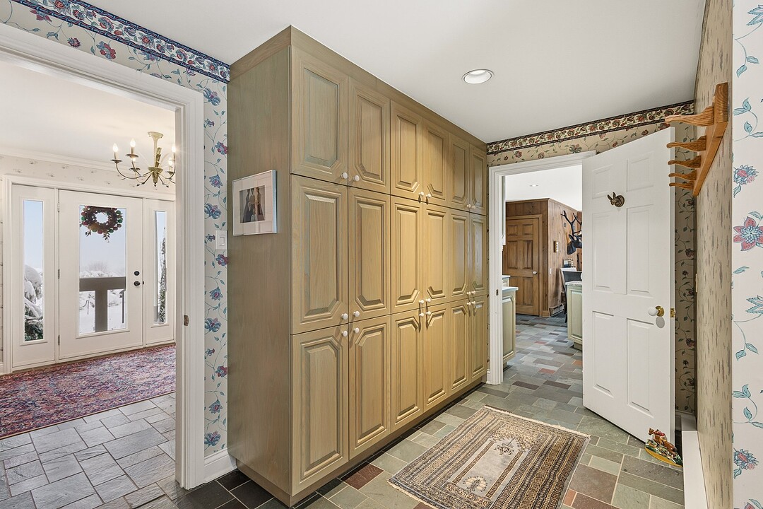 Outside, enjoy beautiful private trails, an inground pool, and a large pond that adds a charming, bucolic touch to the landscape.