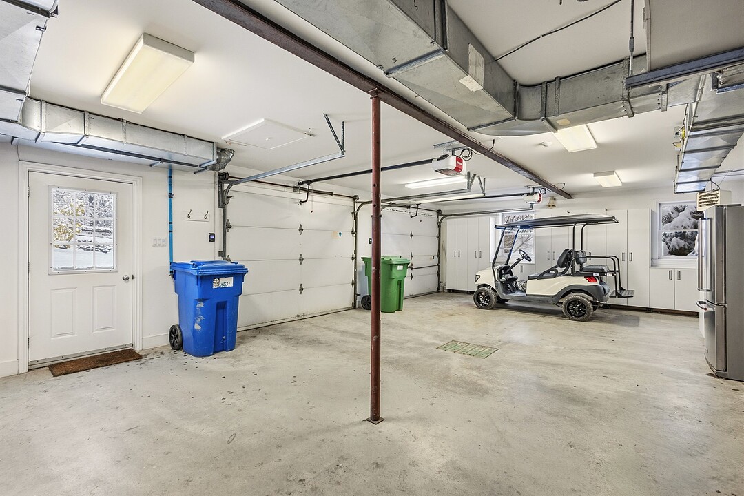 The spacious and functional double garage provides ample room for vehicles and equipment.