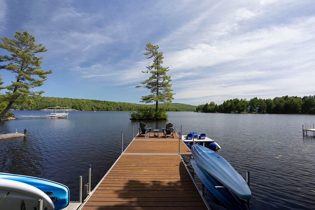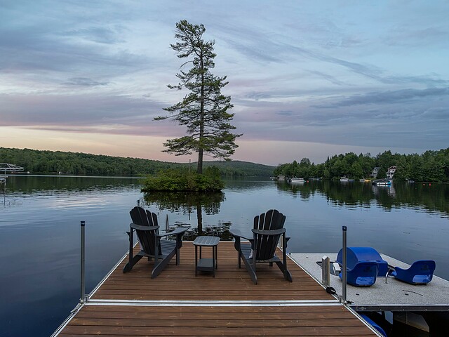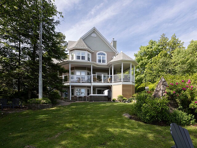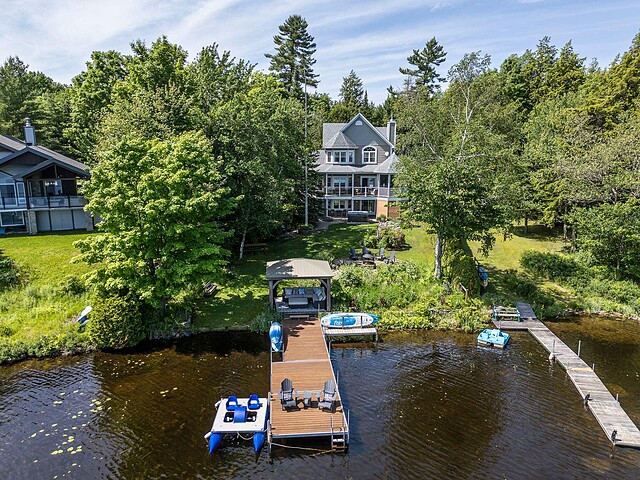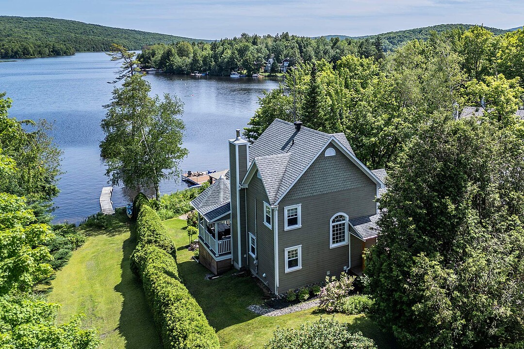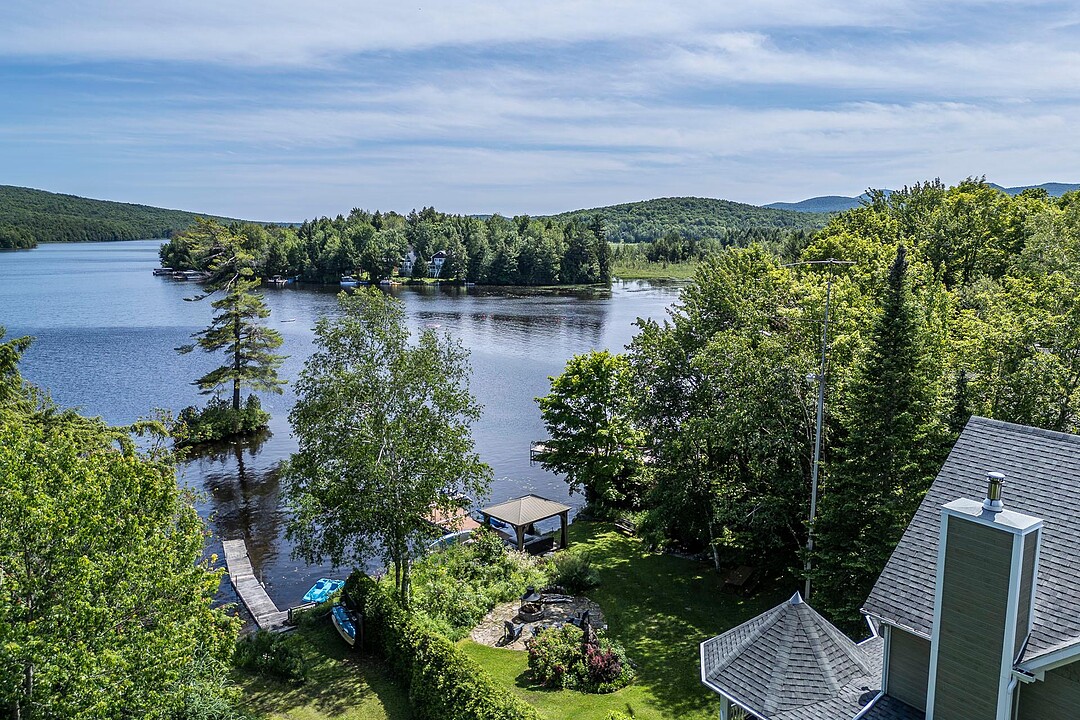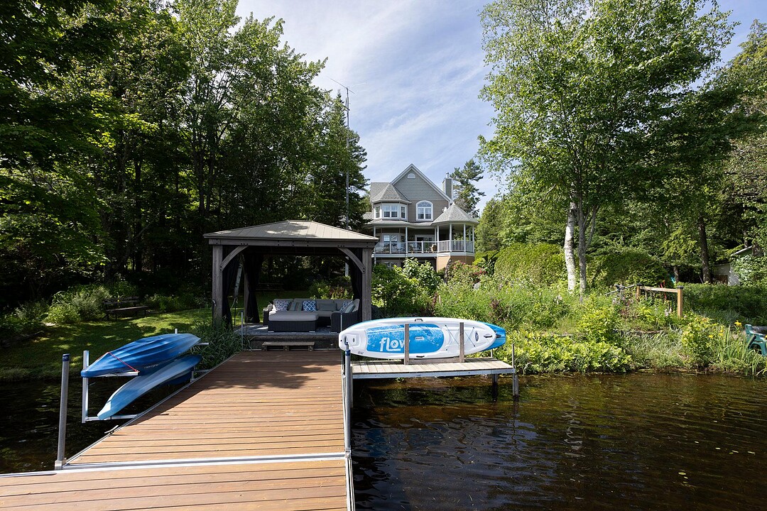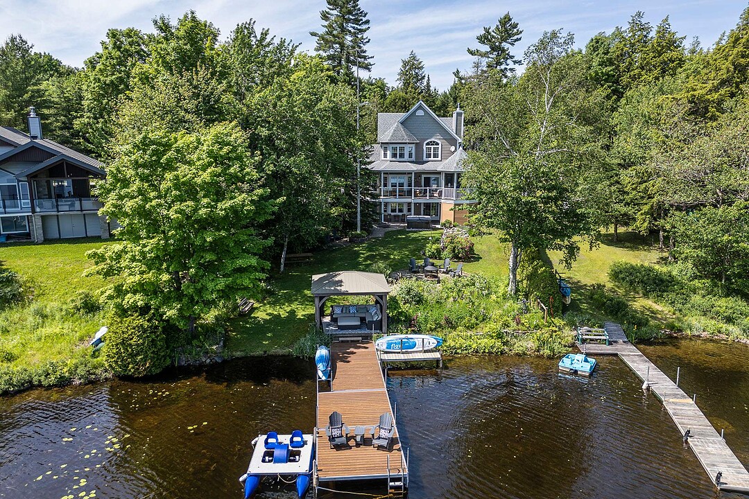 Over 75 linear feet on the majestic Lake Brompton! Impeccable property with magazine-worthy decor -- a true turnkey! It stands out with its three bedrooms and spacious, light-filled rooms, thanks to generous fenestration. Stunning lake views, a vast terrace, and a private dock to enjoy it all! Located in a peaceful bay on a quiet dead-end street, it offers remarkable privacy. Also features a detached double garage with a mezzanine, offering multiple possibilities. Navigable Lake Brompton stretches nearly 13 km. A rare find on the market!