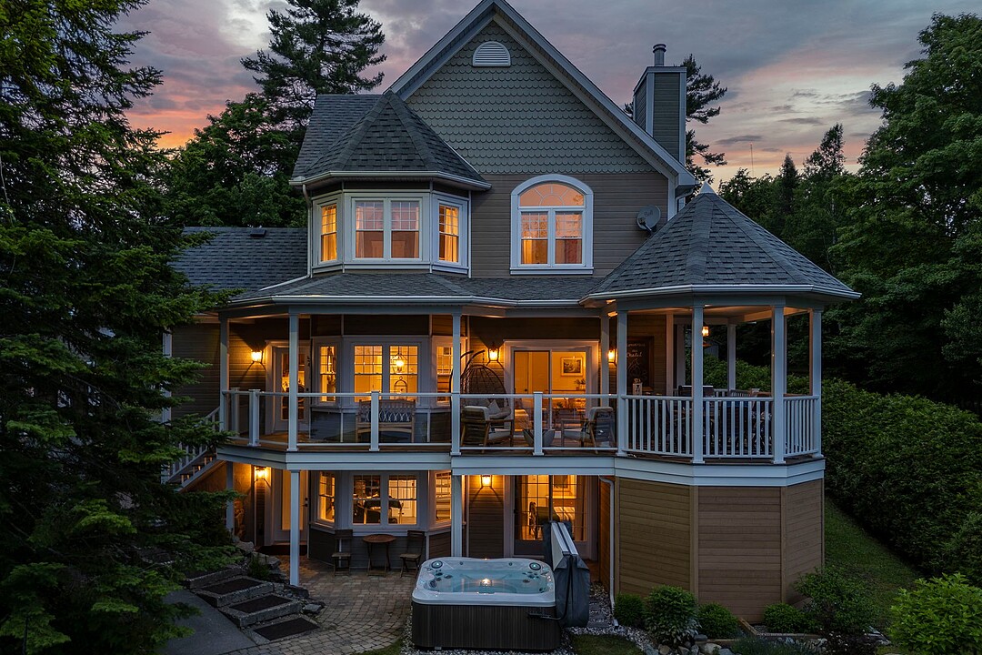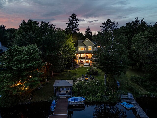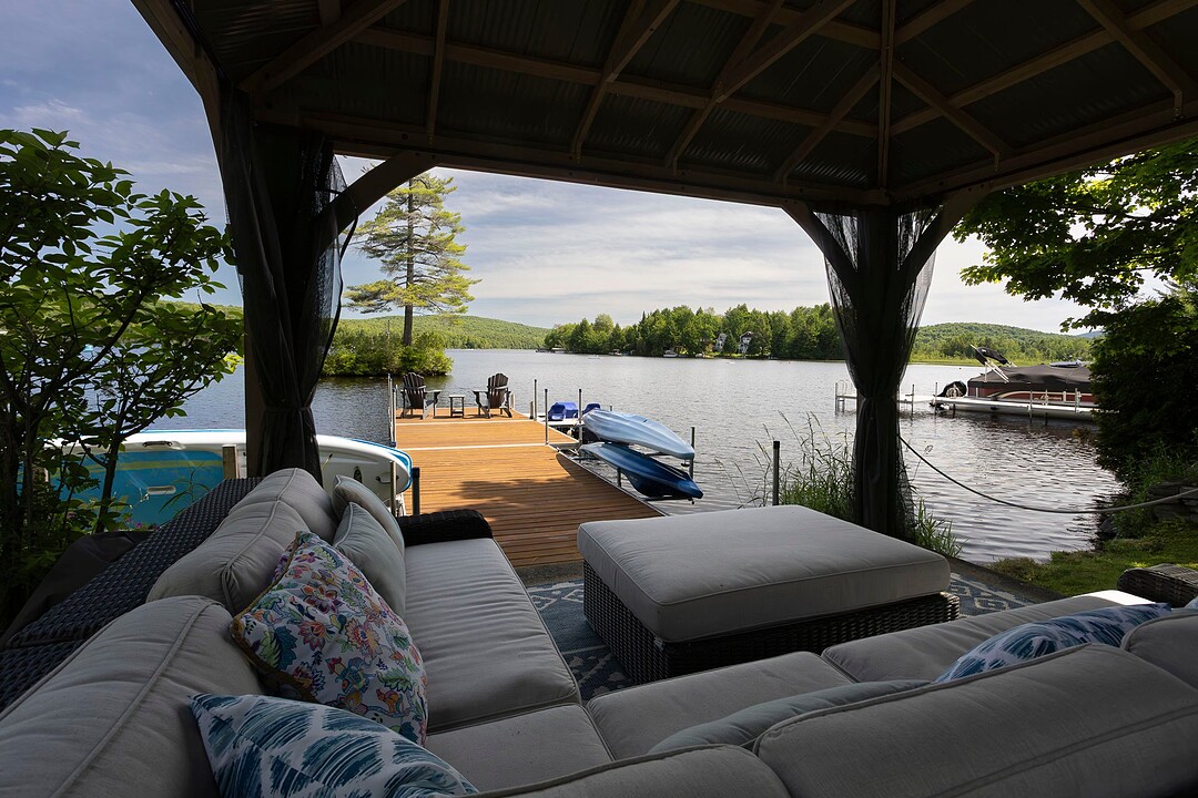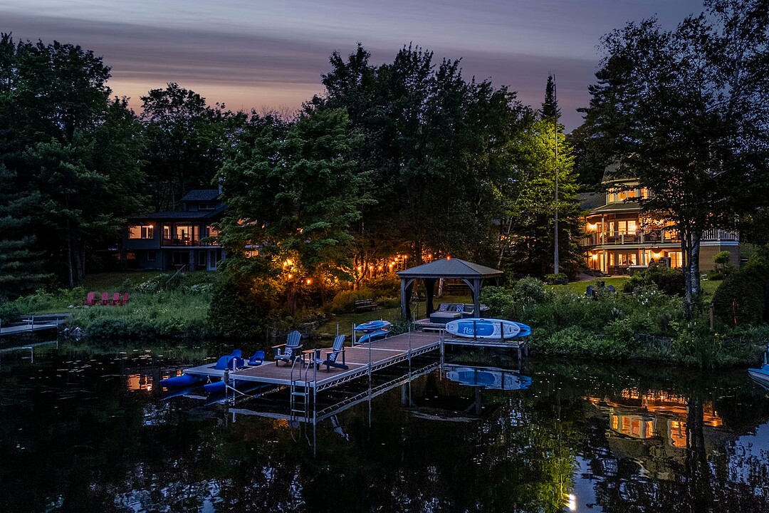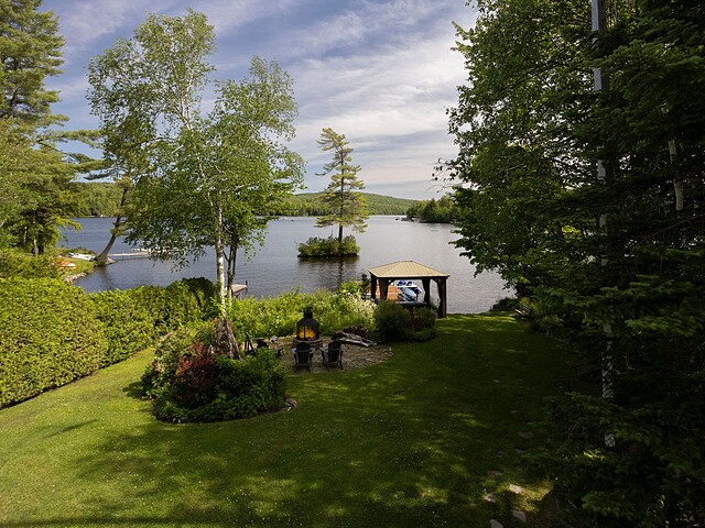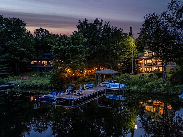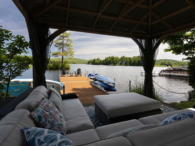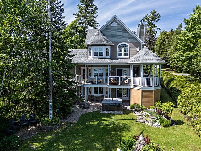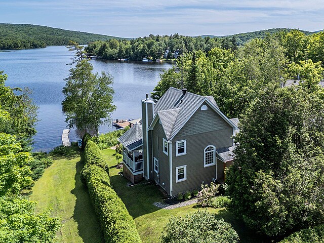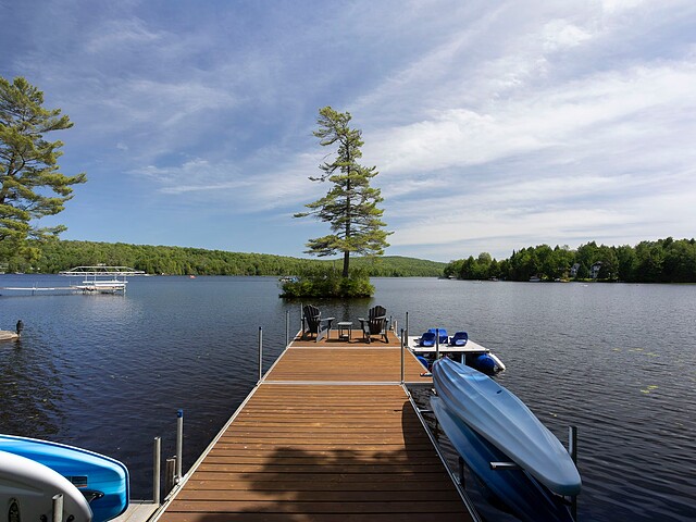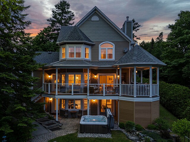 Over 75 linear feet on the majestic Lake Brompton! Impeccable property with magazine-worthy decor -- a true turnkey! It stands out with its three bedrooms and spacious, light-filled rooms, thanks to generous fenestration. Stunning lake views, a vast terrace, and a private dock to enjoy it all! Located in a peaceful bay on a quiet dead-end street, it offers remarkable privacy. Also features a detached double garage with a mezzanine, offering multiple possibilities. Navigable Lake Brompton stretches nearly 13 km. A rare find on the market!