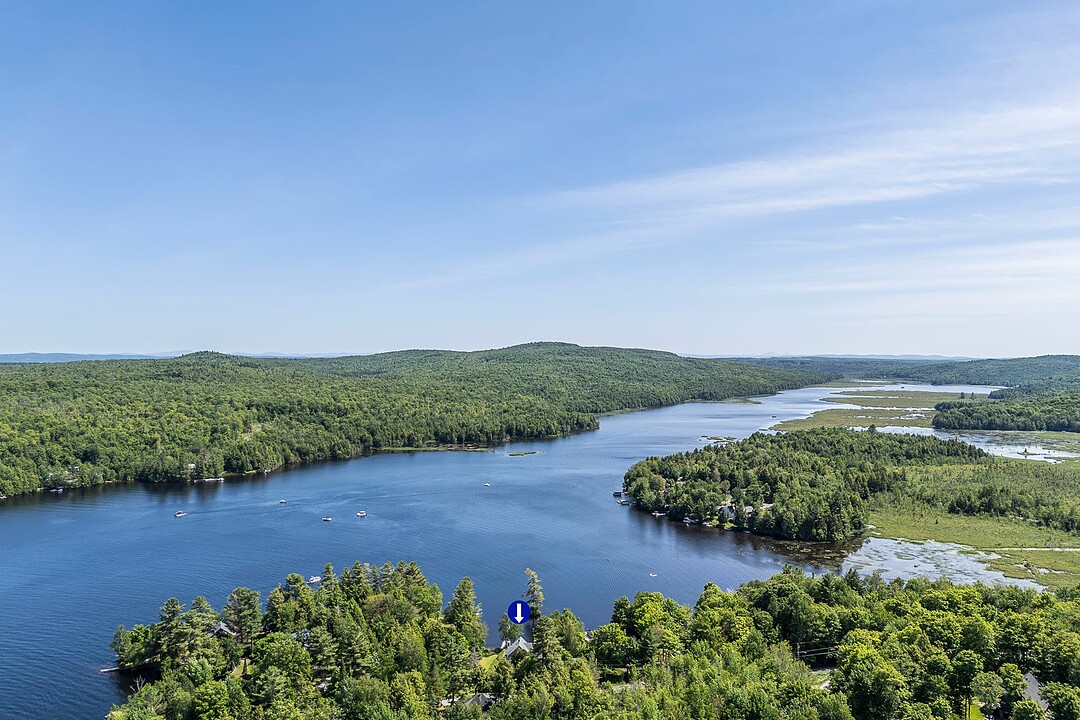 Upstairs, you'll find a spectacular space with cathedral ceilings soaring to 13 feet and breathtaking views of the water. This level includes a spacious primary suite with a walk-in closet, a secondary bedroom, and a beautifully renovated bathroom with a freestanding tub.