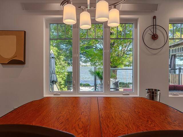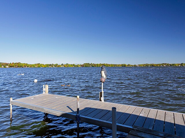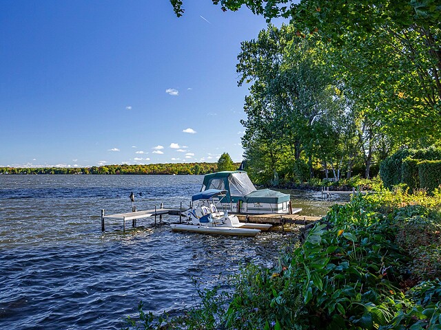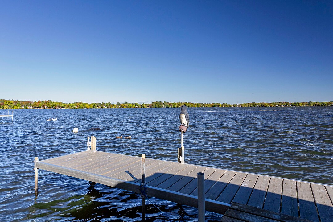 The unique lot, with over 15,700 sq. ft. along the water, features a private dock and a boat launch.