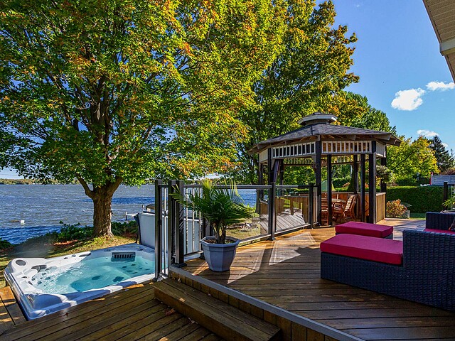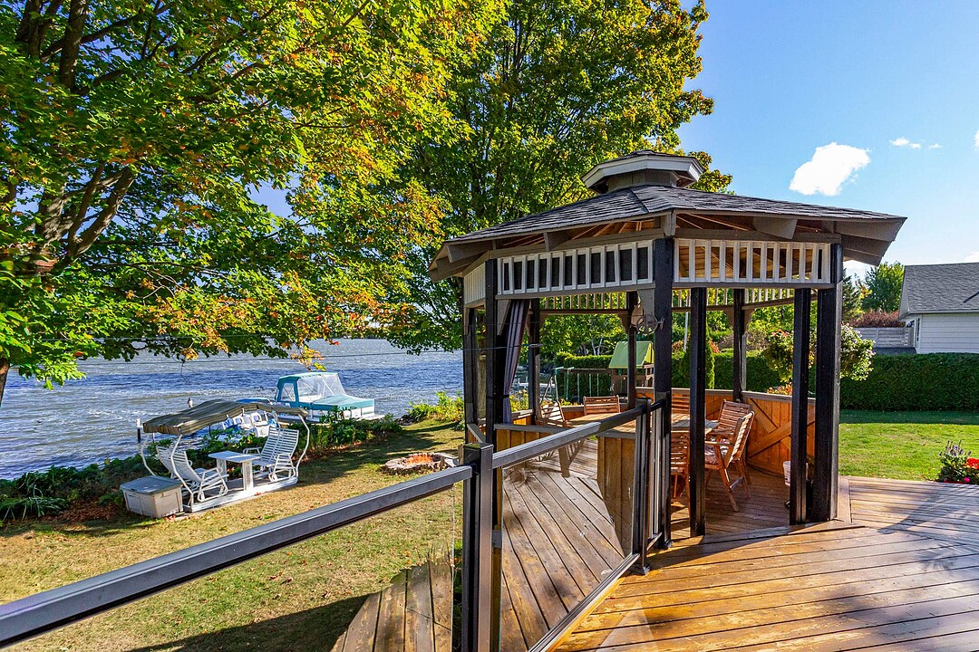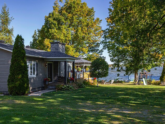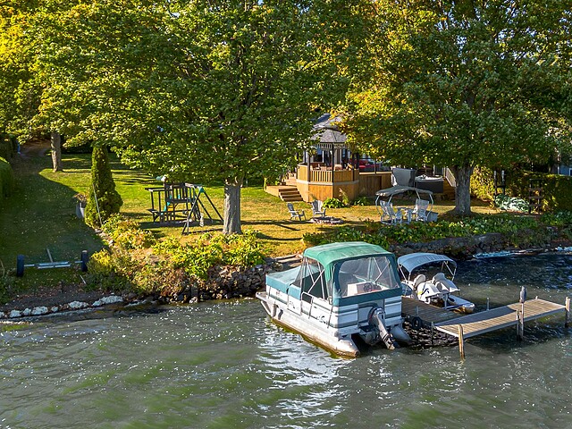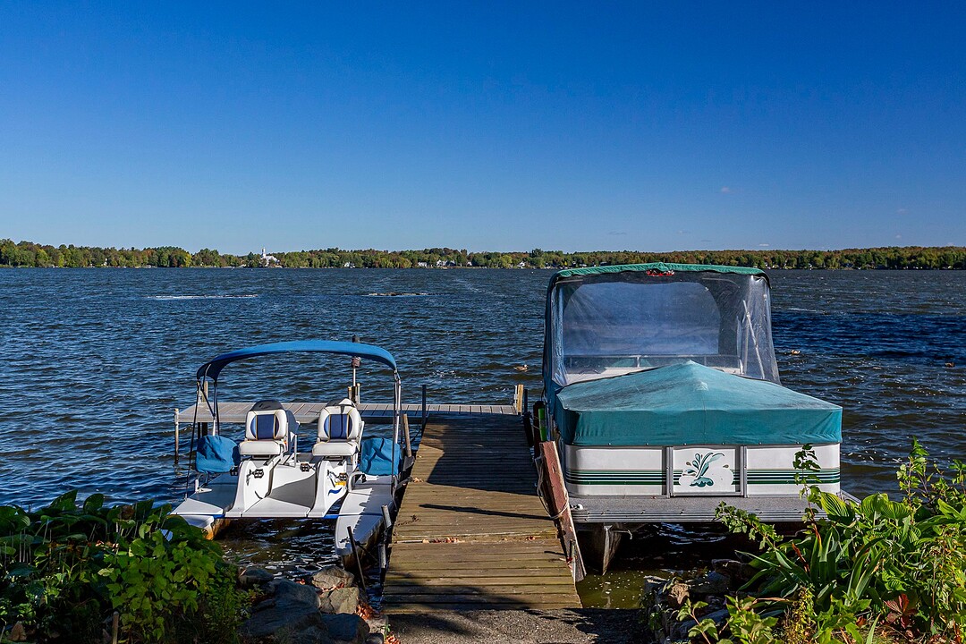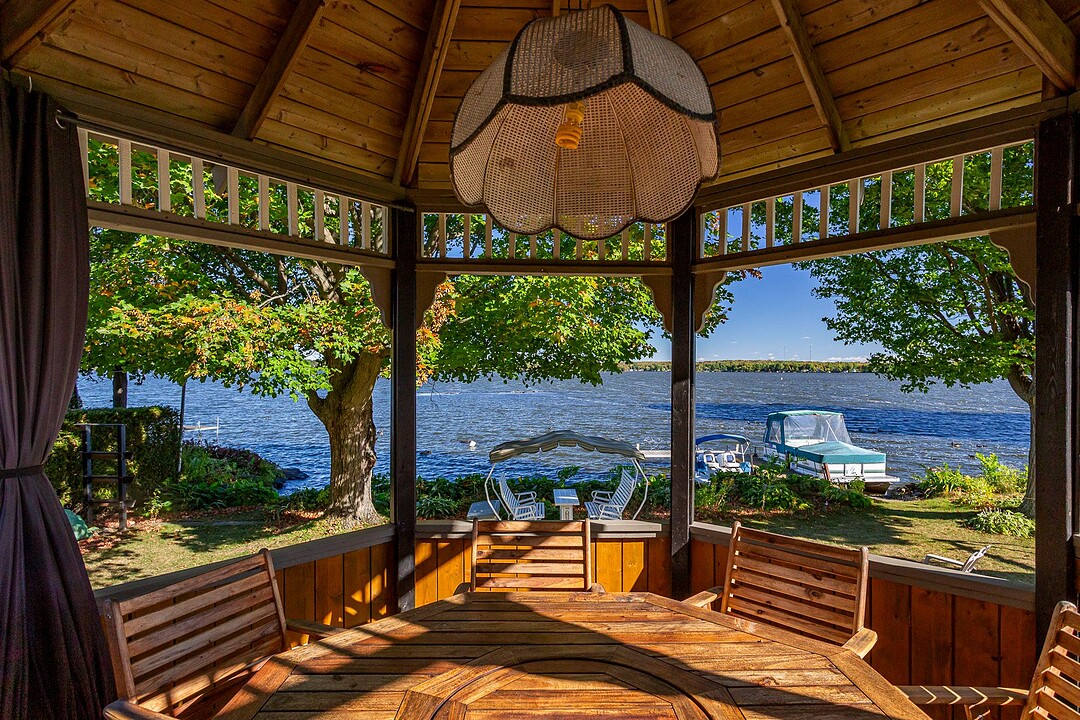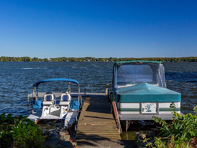 100 linear feet along the stunning Roxton Lake! This exceptional lot of over 15,700 sq. ft., set back from the road and featuring a private dock, offers both privacy and tranquility. The property charms with its warm and inviting atmosphere, enhanced by a wood-burning fireplace and an open-concept living area. Expansive windows flood the rooms with natural light and showcase spectacular views of the lake. A spacious detached garage and a large storage area complete the package, blending comfort and practicality. A true lakeside retreat, just minutes from all amenities!