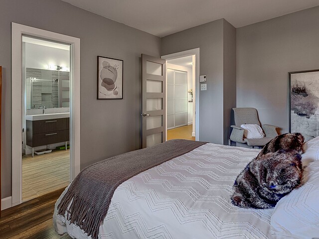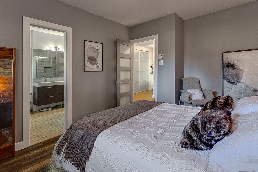 The primary bedroom boasts a large walk-in closet and an ensuite bathroom, while the secondary bedroom is perfect for accommodating family and guests.