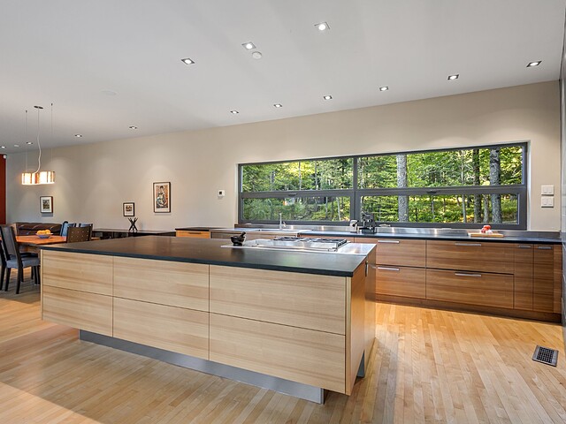 FEATURES: - Sold fully furnished and equipped - Geothermal heating and cooling - BIONEST system - Electric vehicle charging station - Torrefied wood exterior - Possibility of 500 taps approx. - Insulated and heated sugar shack - Landscaped trails - Wine cellar (approx. 215 bottles) - 2 garages (attached and detached)