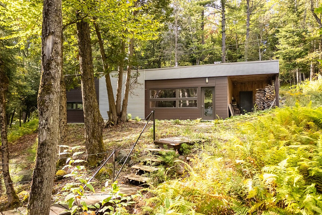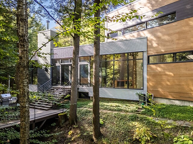 ARCHITECTURE & BUCOLIC NATURE! Set on 15 wooded acres, this architect-designed property stands out with its unique lines, noble materials, and spectacular windows that flood the interiors with natural light. The North Yamaska River flows across the entire estate, offering shoreline on both sides of the property as well as stunning waterfalls that enhance the site's natural charm. An authentic sugar shack creates a warm and inviting space for gatherings, while the private trails, the river, and absolute privacy make this estate a true haven of exception. An exclusive opportunity not to be missed !