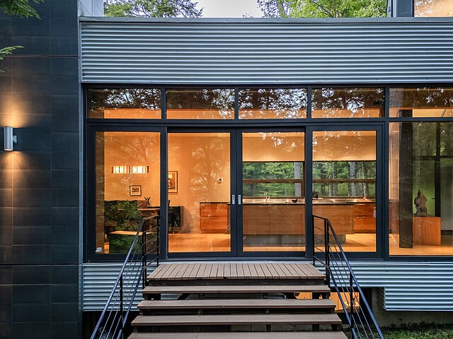 Upon entering, a spectacular foyer with 20-foot ceilings and an elegant ceramic wall opens onto breathtaking forest views.