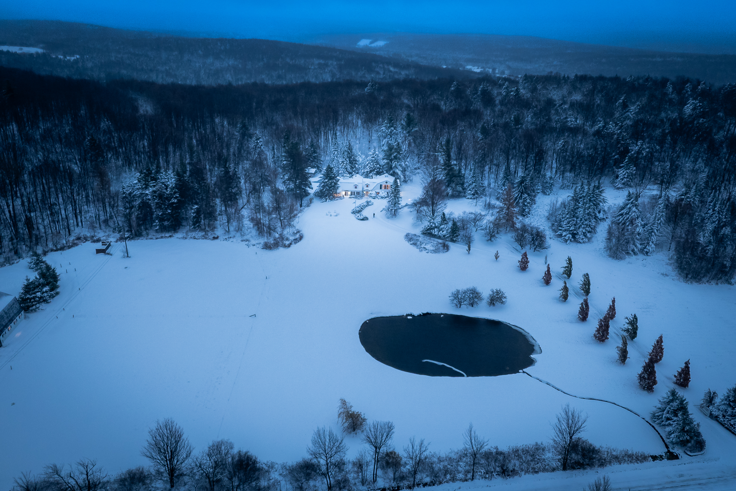 Perchée sur un point élevé, elle offre une vue panoramique à couper le souffle ainsi que des couchers de soleil spectaculaires. La propriété est vendue entièrement meublée et équipée, et comprend des services de conciergerie. Profitez d’une piscine creusée, d’un magnifique étang et de plusieurs kilomètres de sentiers accessibles directement depuis la propriété. Que vous soyez skieur, amateur de nature, professionnel en télétravail ou simplement à la recherche d’un havre de paix à la campagne, ce domaine s’adresse à ceux qui recherchent une qualité de vie tout à fait exceptionnelle.