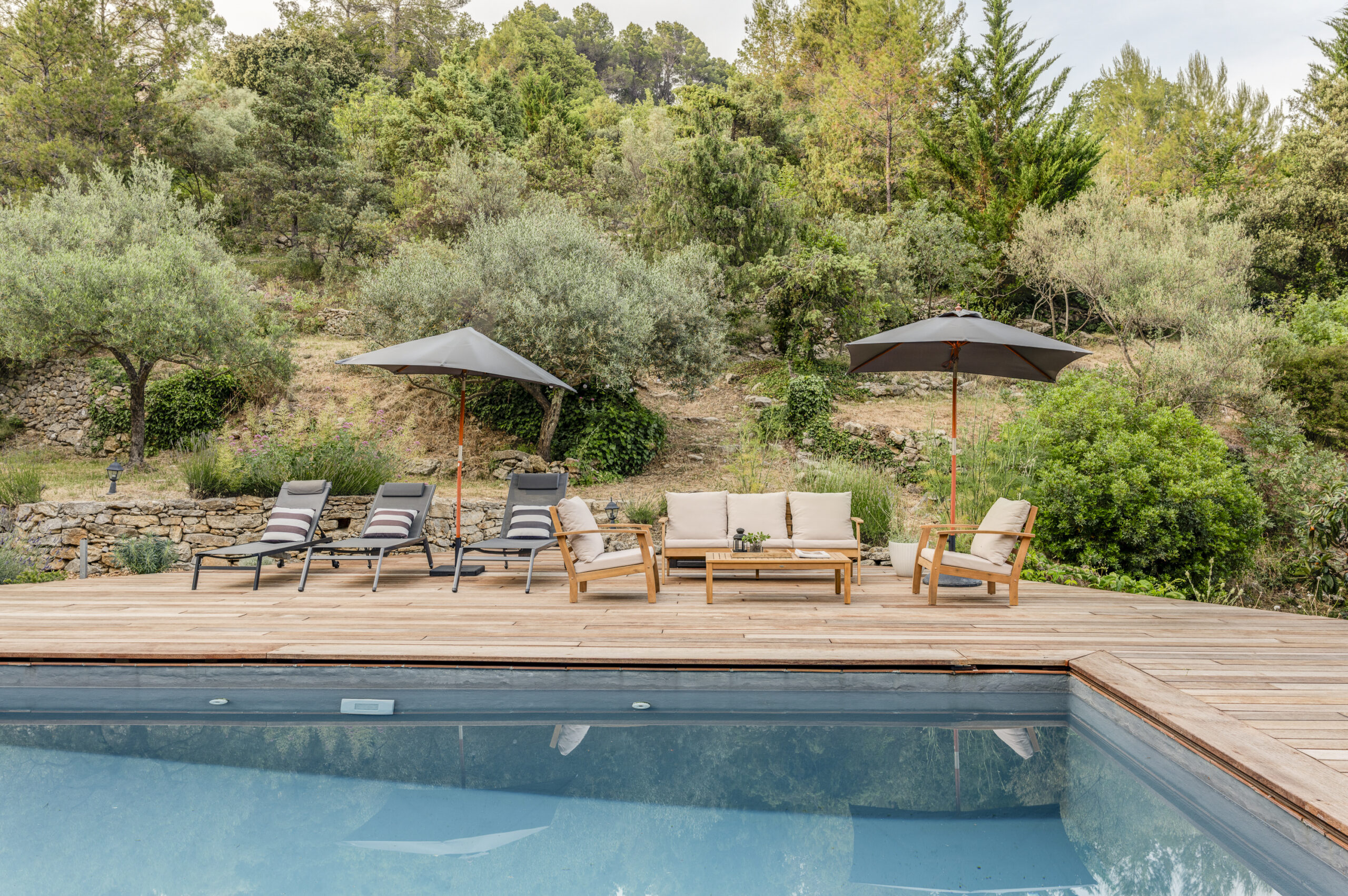 Vous passerez des moments inoubliables dans ce havre de paix, au cœur d’une nature verdoyante, complanté d’oliviers, de lavandes, de thym et de romarin.