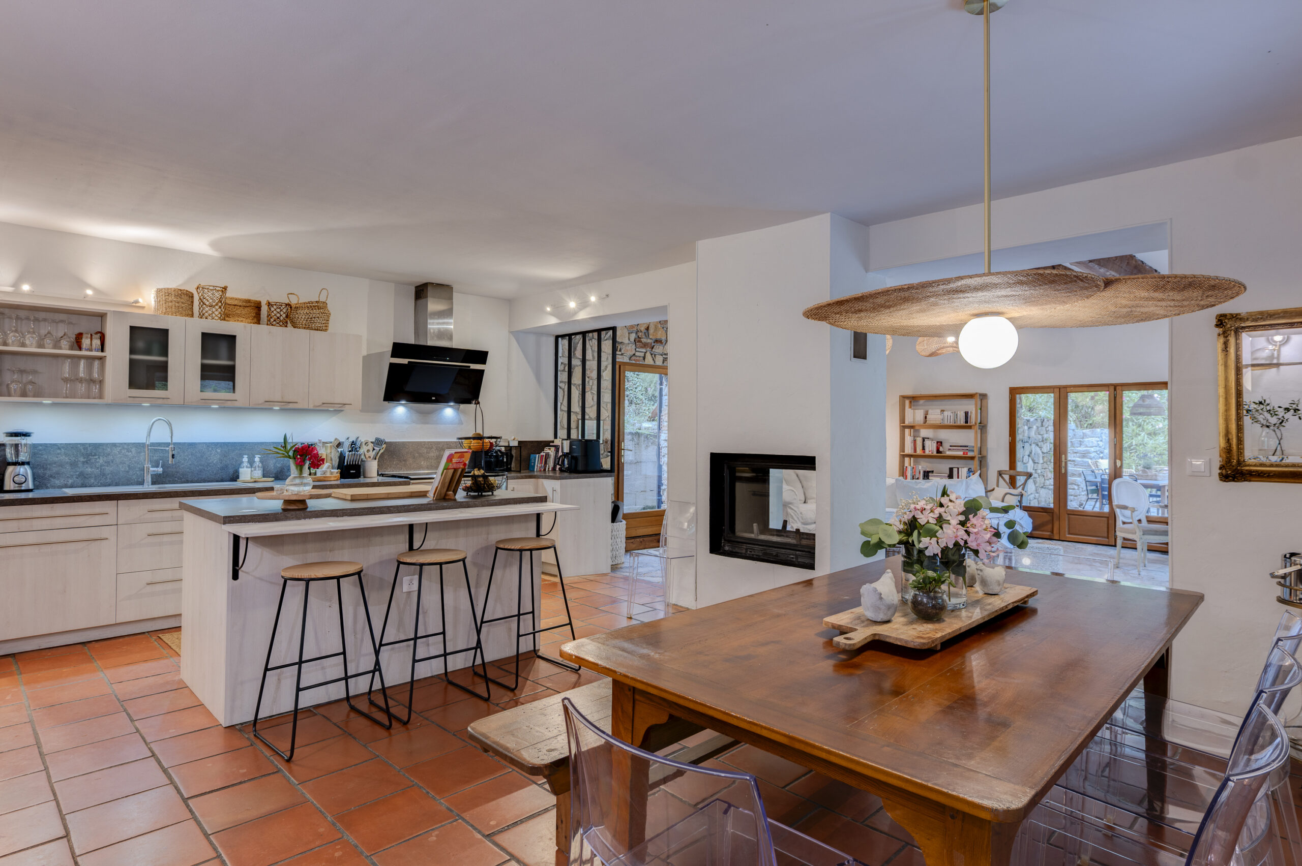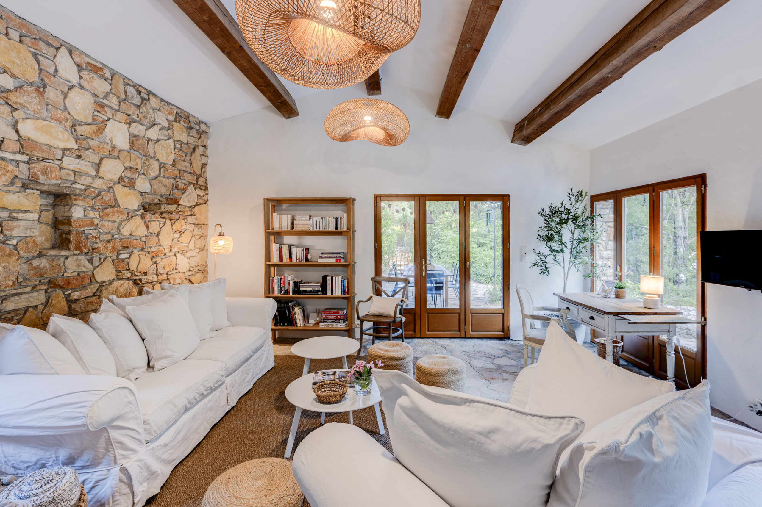 La bastide vient d’être entièrement rénovée et propose des prestations de qualité. Les 140m2 habitables, entièrement climatisés, peuvent accueillir 8 personnes dans 4 belles chambres et 4 salles de bains. Plus de détails ci-dessous!